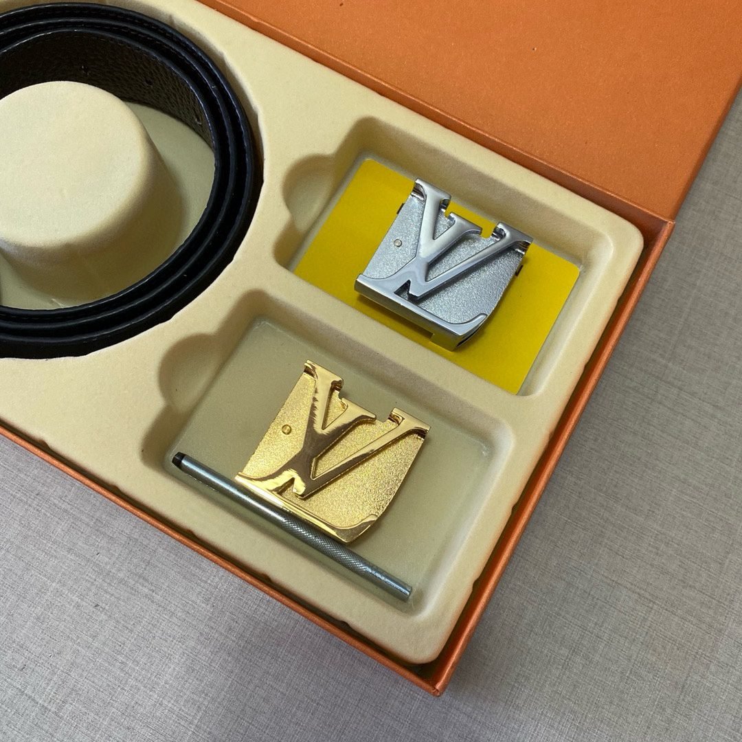 Home Belt LV belt Louis Vuitton classic double buckle V-buckle belt gift box set, simple and elegant, noble and luxurious