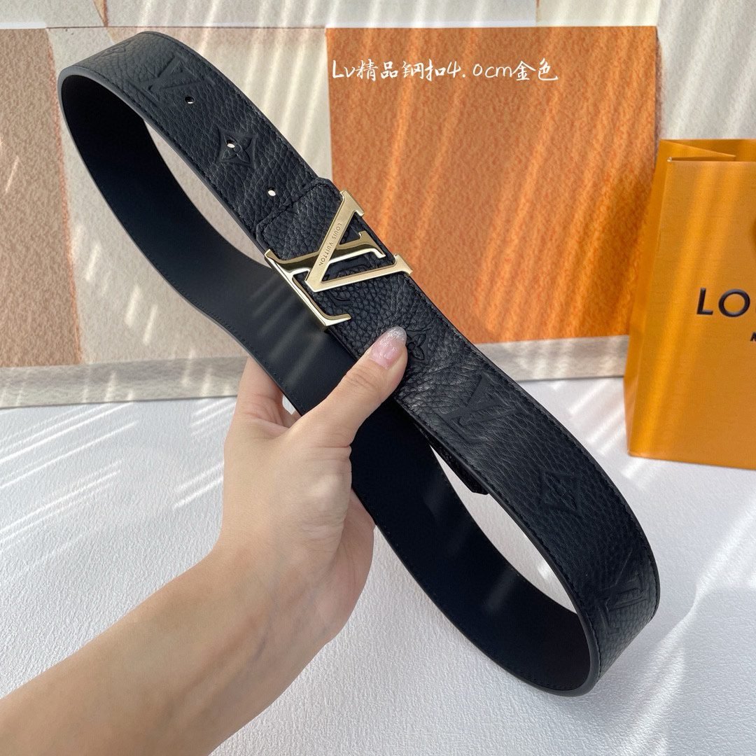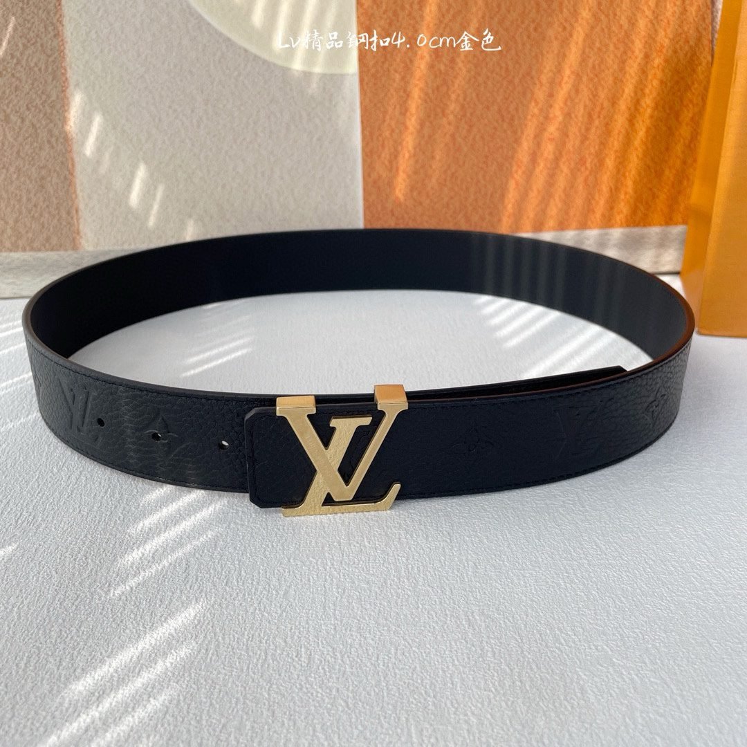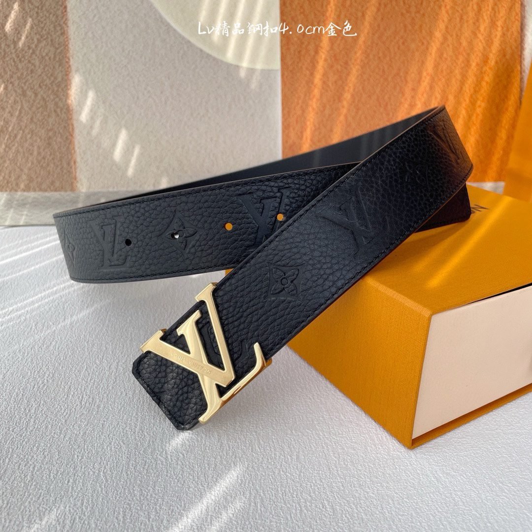 Home Belt LV belt Louis Vuitton gold buckle black textured belt, simple and elegant, noble and elegant
