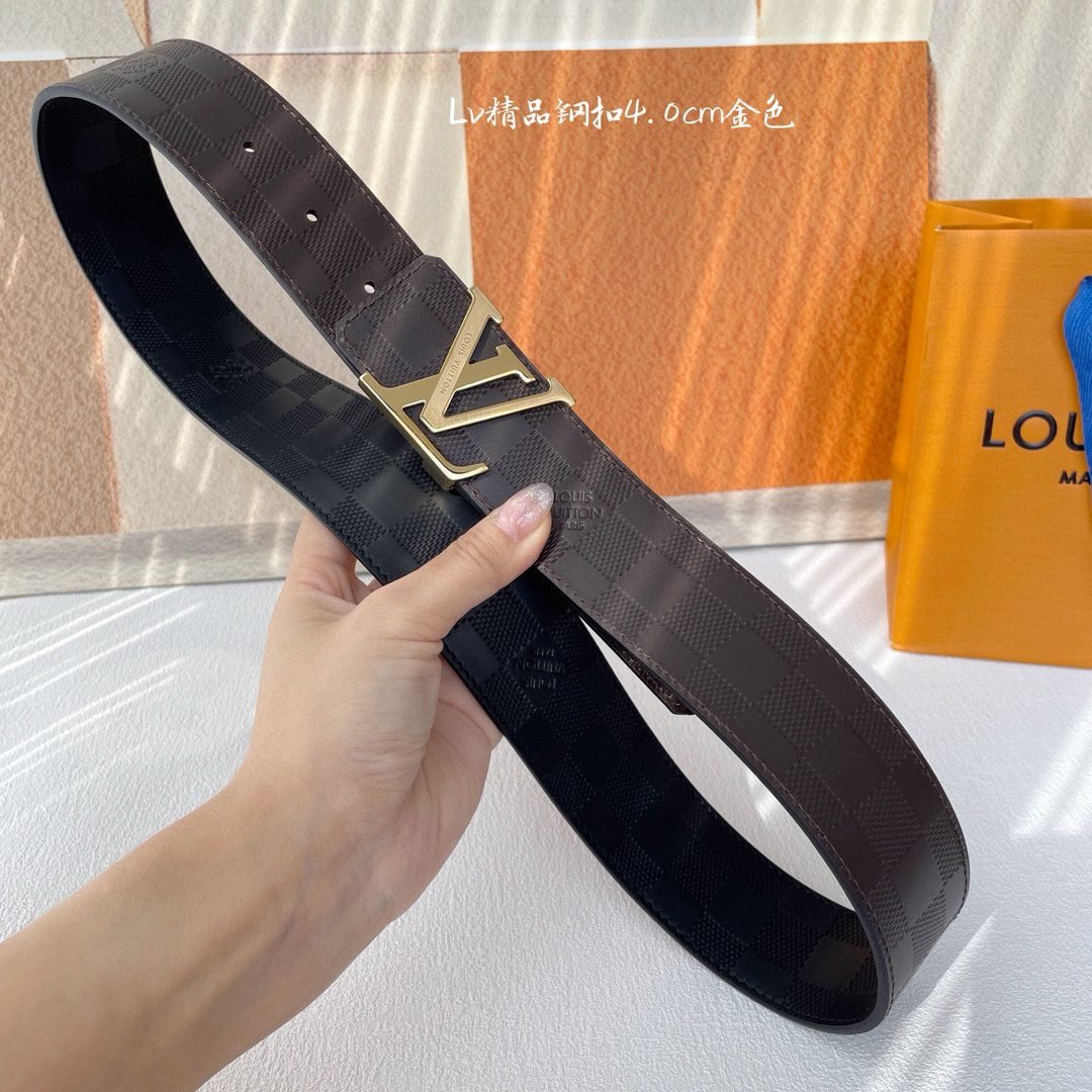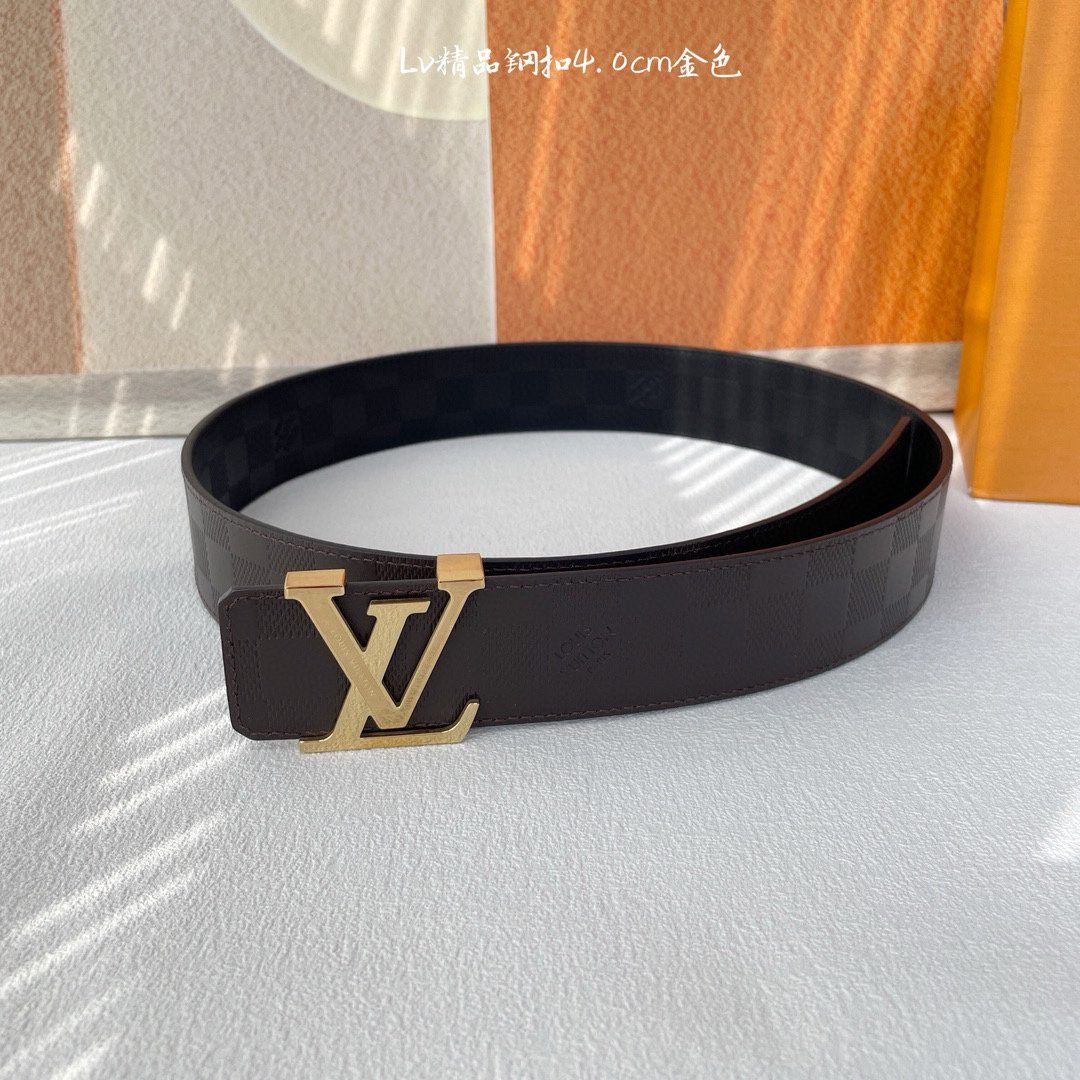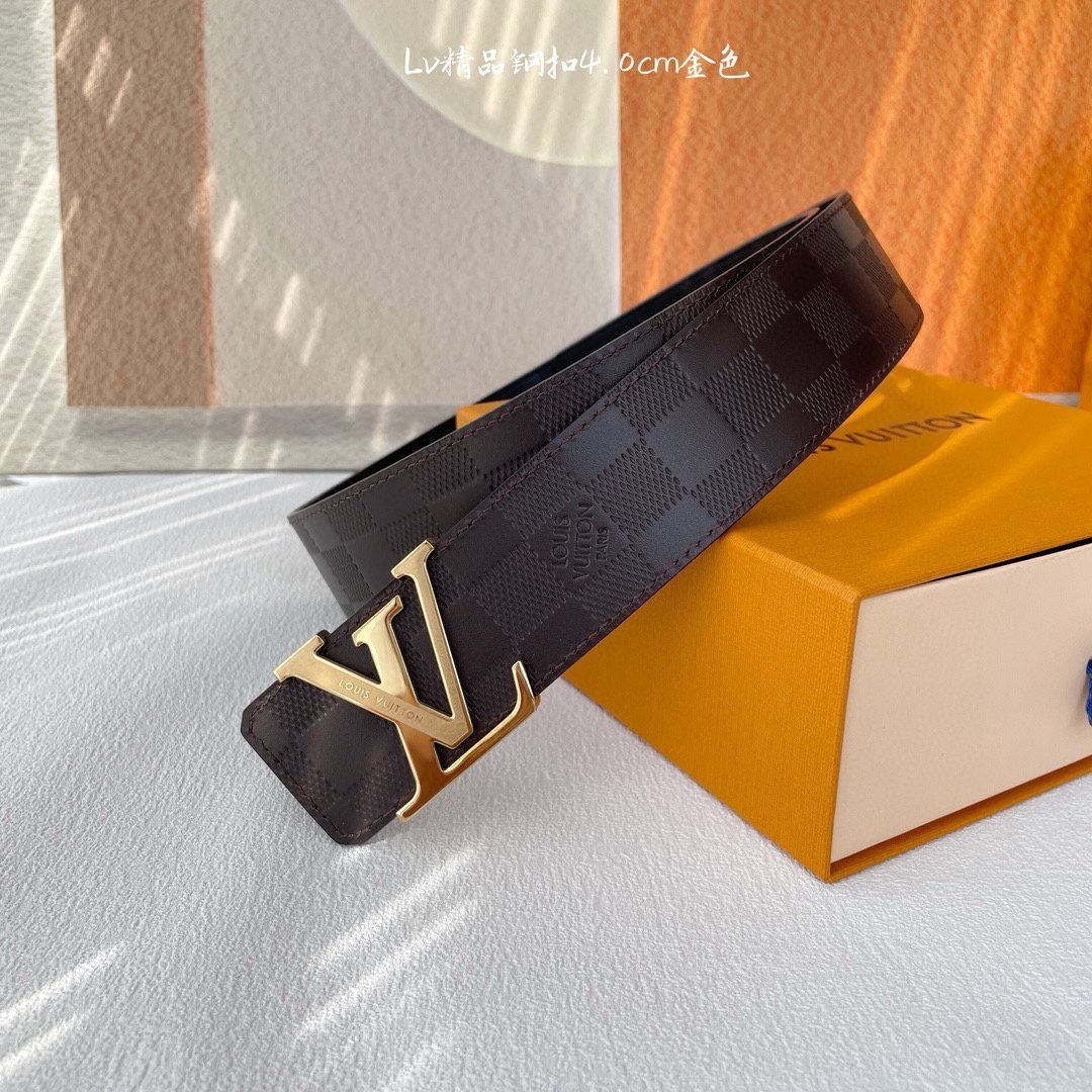 Home Belt LV belt Louis Vuitton gold buckle black textured belt, simple and elegant, noble and elegant
