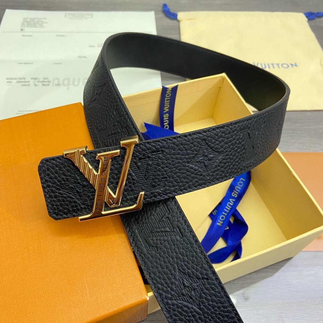 Home Belt LV belt Louis Vuitton gold V buckle black textured belt, simple and elegant, noble and elegant