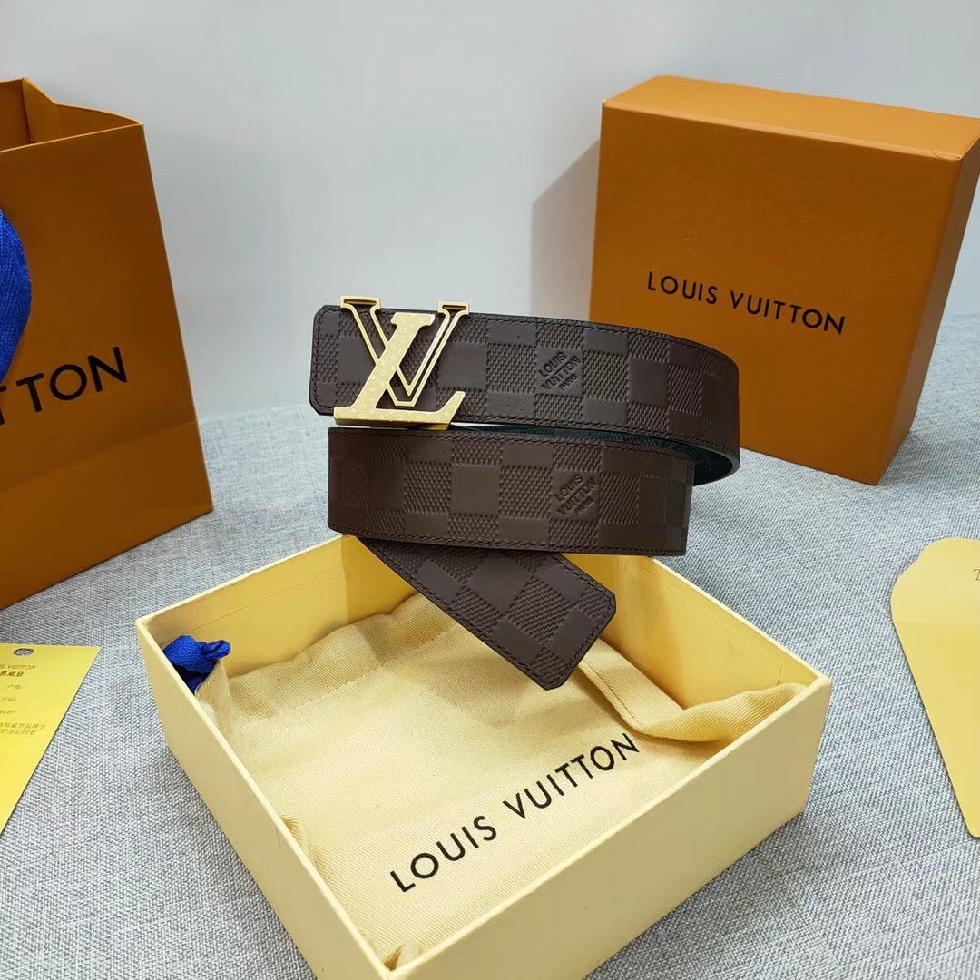 Louis Vuitton’s golden V brown plaid belt is made of selected high-quality cowhide as its raw material. It has been carefully polished through multiple processes to present a unique texture and luster. The belt buckle head is made of gold metal and matched with the classic “LV” logo, showing a low-key luxury taste. The belt has a moderate width and smooth lines, making it comfortable to wear without losing its atmosphere.