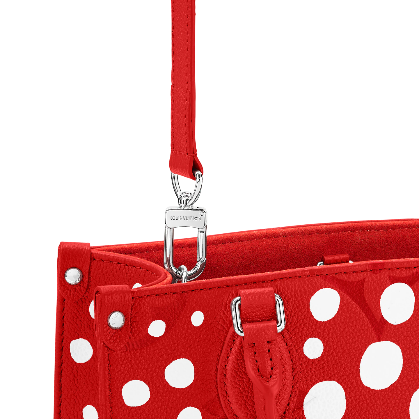 For the second Louis Vuitton x Yayoi Kusama collaboration. the LVxYK OnTheGo PM is enlivened with the Infinity Dots design. a reference to the visionary Japanese artist’s signature dotted motifs. A constellation of bright white dots is printed on sumptuous cowhide in a vibrant shade of red. embossed with the House’s heritage Monogram pattern. And the pumpkin-shaped charm is inspired by another recurring theme in Kusama’s work.