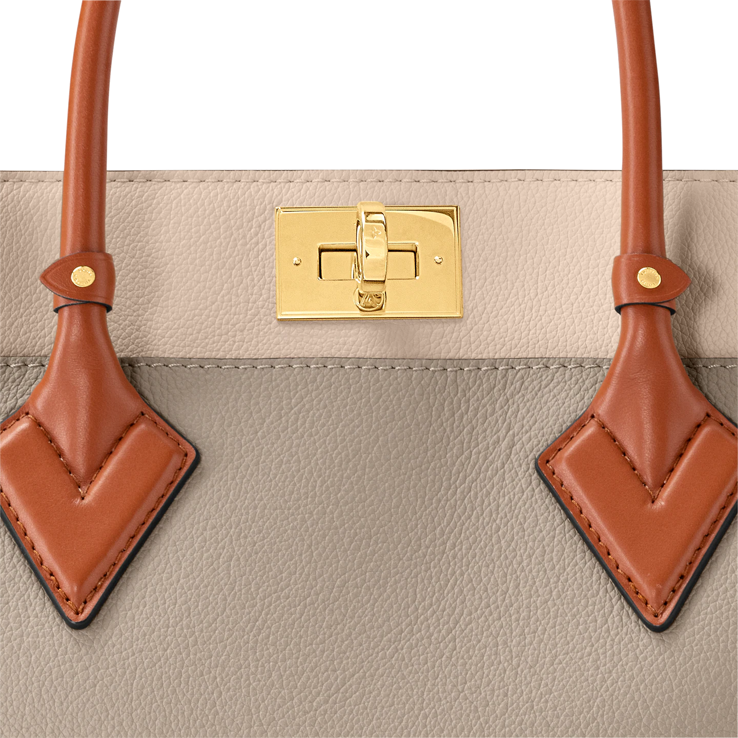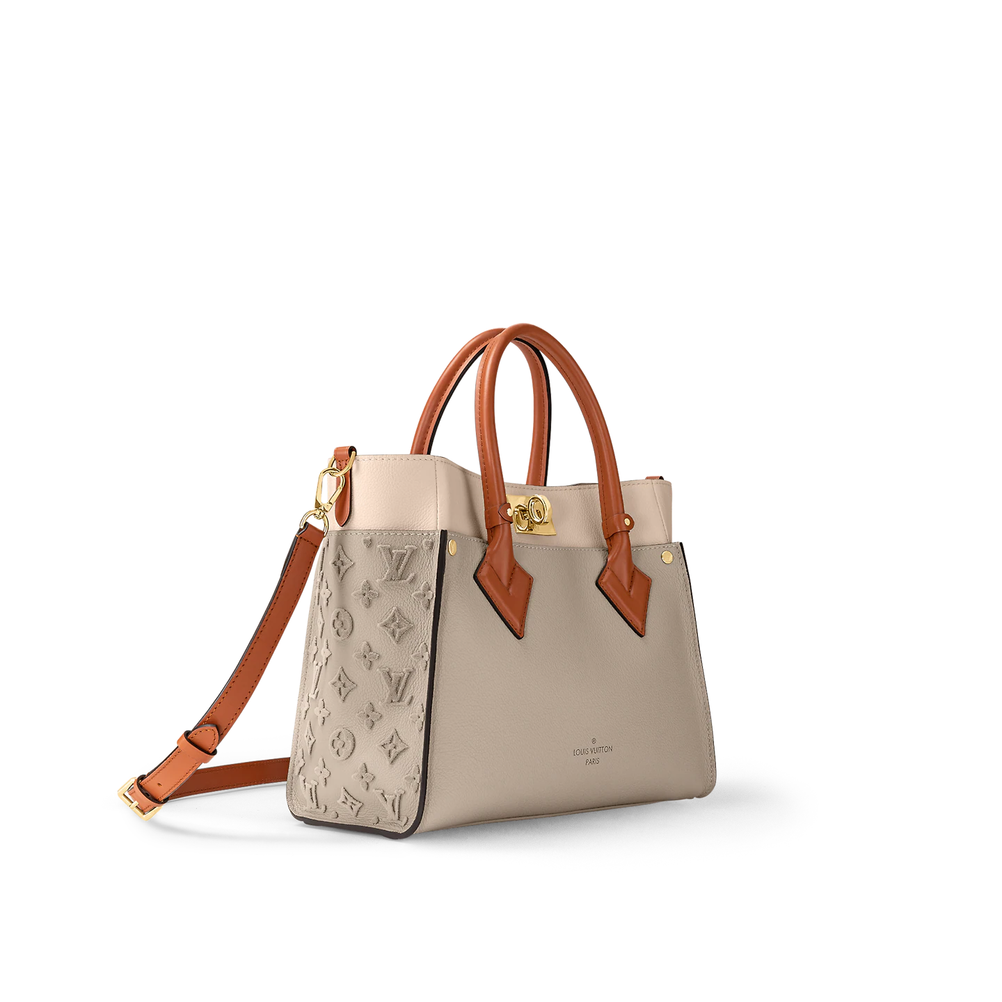 The OnTheGo MM is a medium-sized tote bag with two sets of handles. long and short. for hand and shoulder