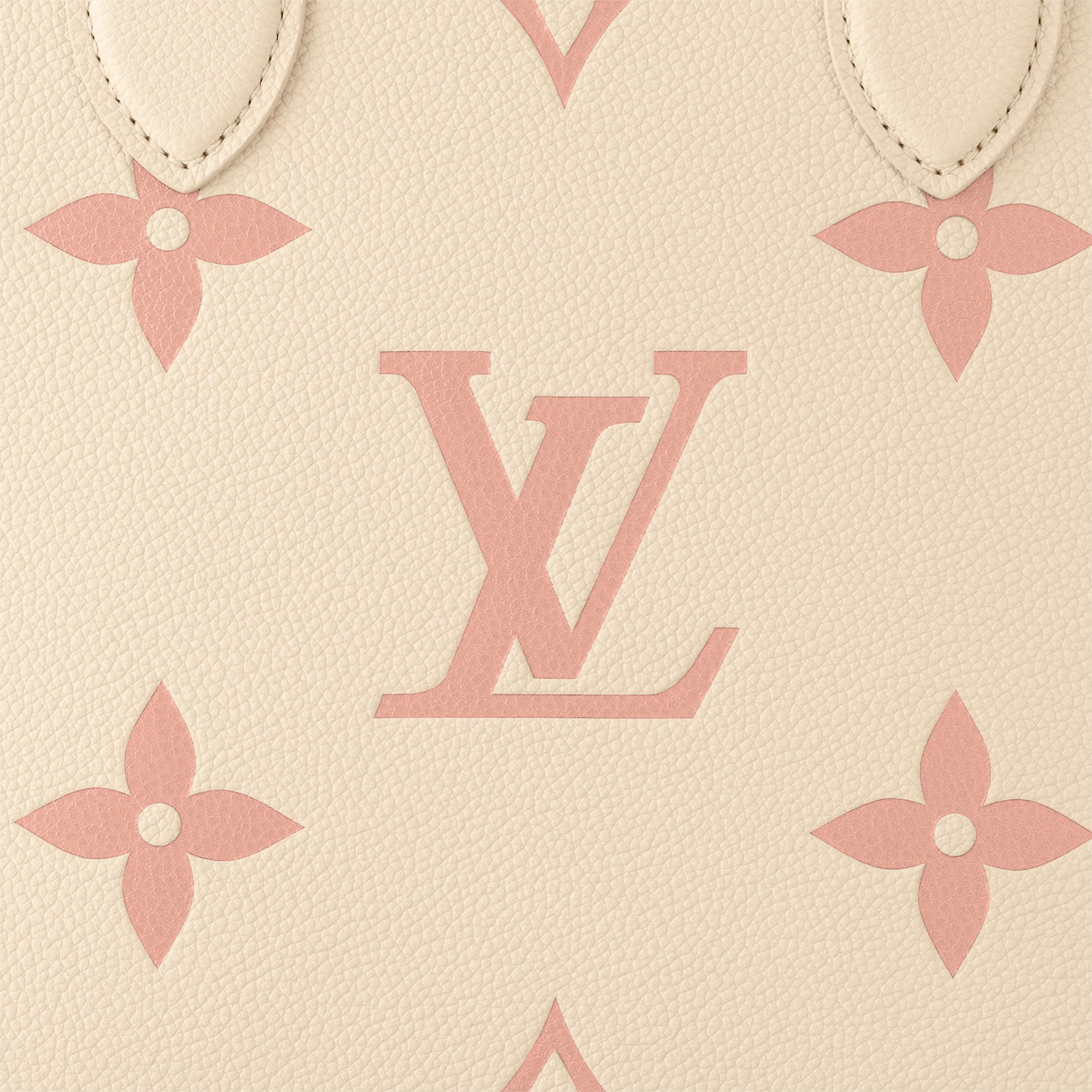A soft cream-tone makes the Monogram Empreinte leather of this OnTheGo PM bag seem luminous. The LVs and Monogram Flowers