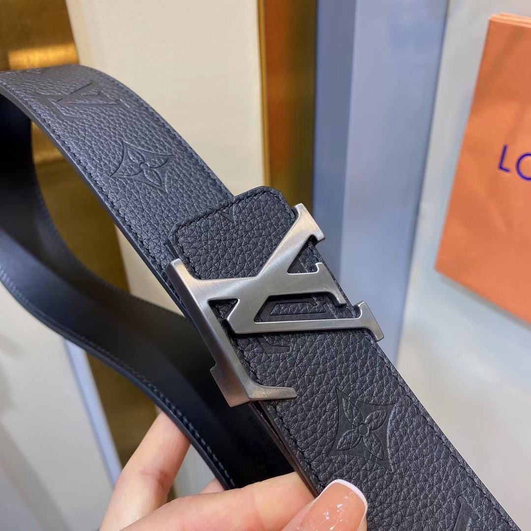 Home Belt LV belt Louis Vuitton silver buckle black textured belt, simple and elegant, low-key luxury