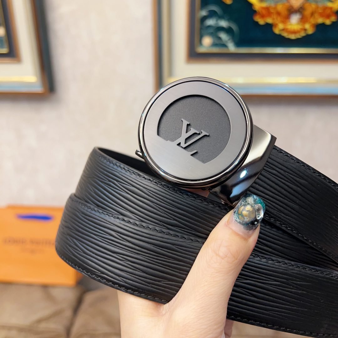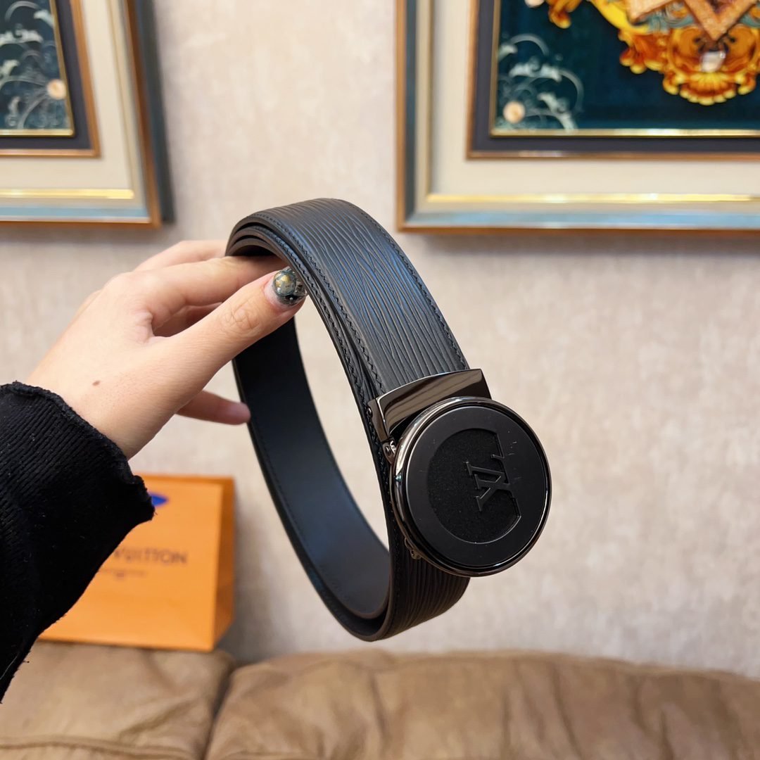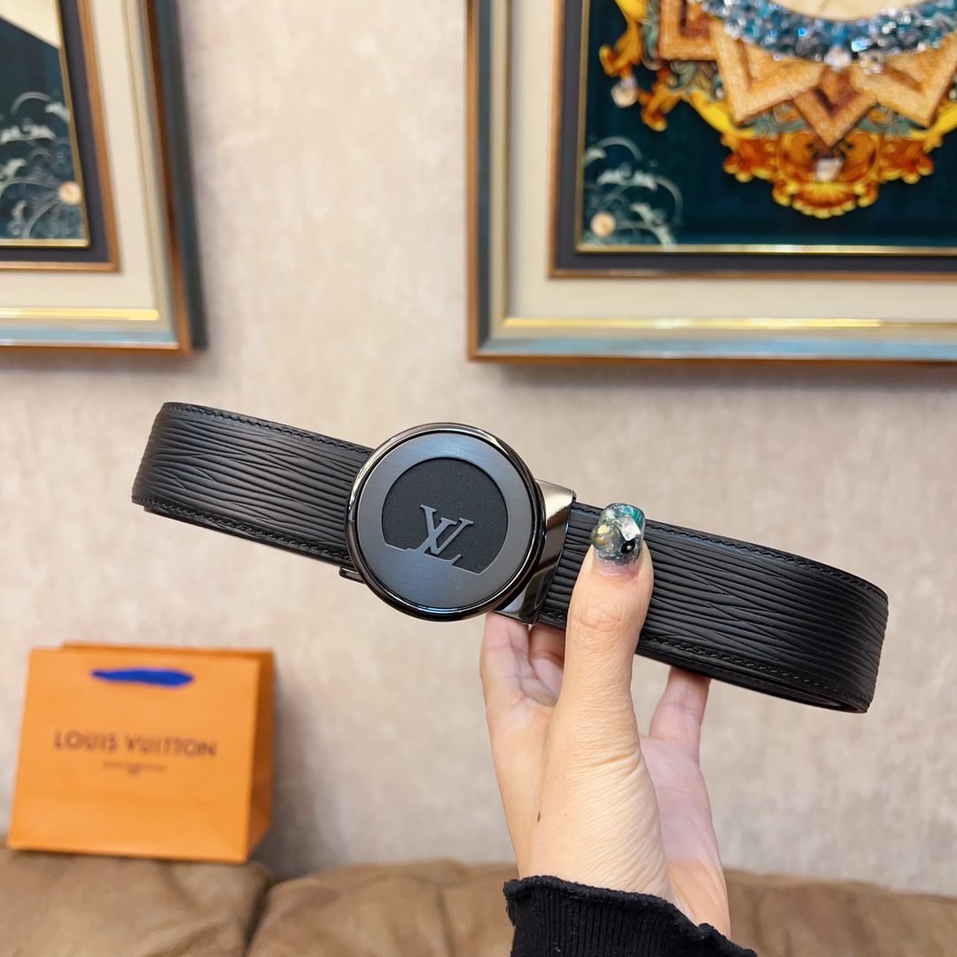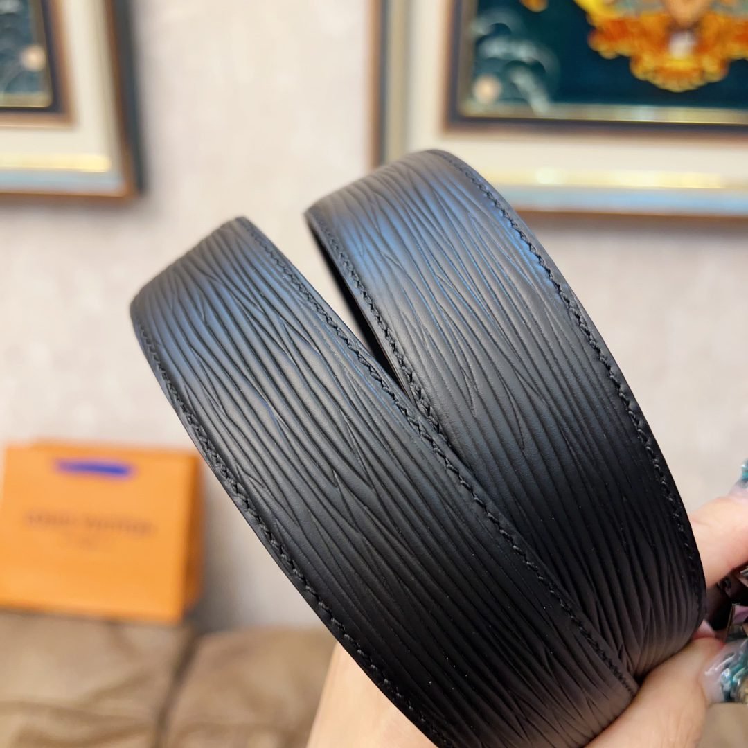 Louis Vuitton’s black belt with silver round buckle, with its exquisite craftsmanship and unique brand charm, demonstrates the noble temperament and taste of men. The belt is made of high-quality black leather, with a delicate and smooth surface and a soft and comfortable touch. The belt buckle is designed in silver and is inlaid with Louis Vuitton’s iconic “LV” pattern, highlighting the brand’s nobility and elegance.