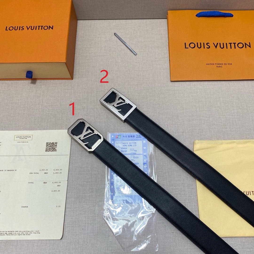 This Louis Vuitton black belt with silver square buckle is made of top-grade leather material, and the black tone shows calmness and grandeur. The unique silver square buckle is engraved with the classic “LV” logo, highlighting the wearer’s distinguished status and unique taste.