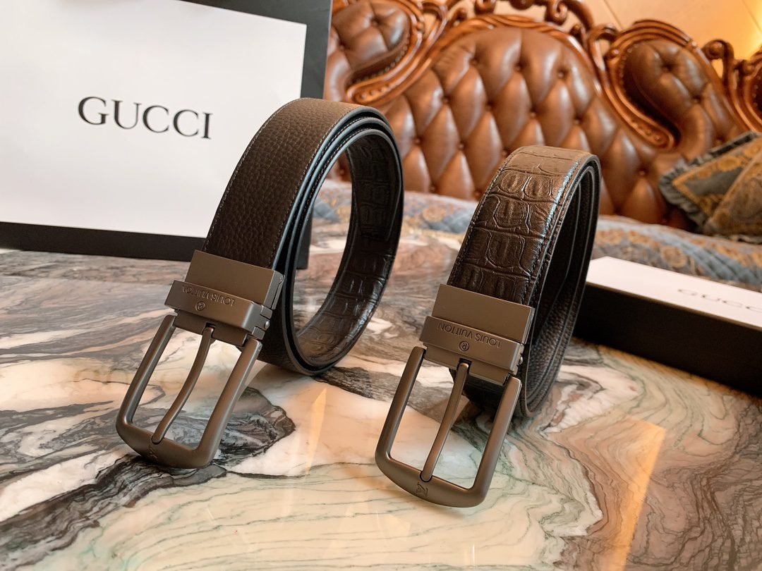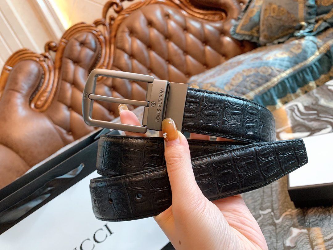 This Louis Vuitton black belt with silver square buckle is made of high-quality black leather with fine surface texture and soft and comfortable feel. The silver buckle is made with exquisite craftsmanship and is engraved with “Louis Vuitton”, highlighting the high-end quality of the brand’s co-branding.