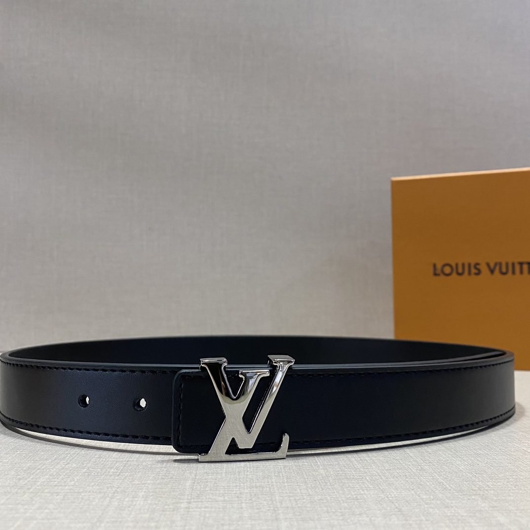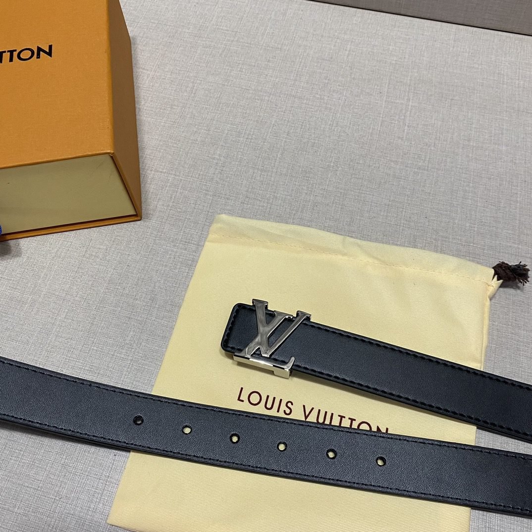 Louis Vuitton silver V buckle black belt, simple and elegant, low-key luxury