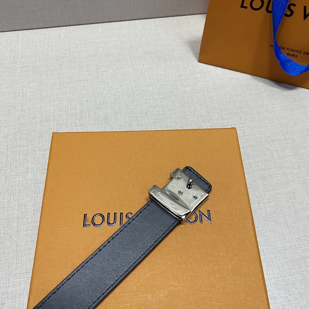 Home Belt LV belt Louis Vuitton silver V buckle black belt, simple and elegant, low-key luxury