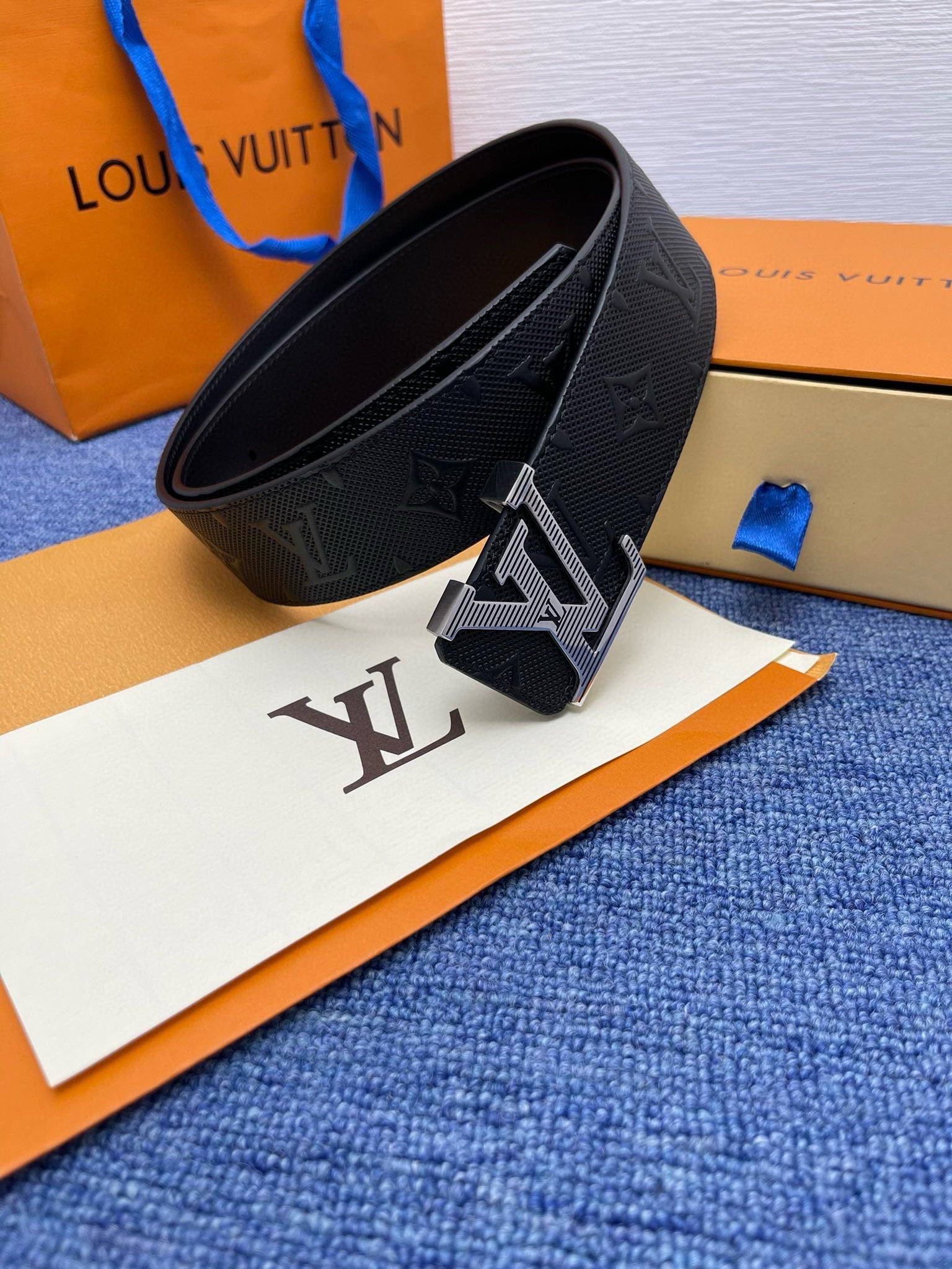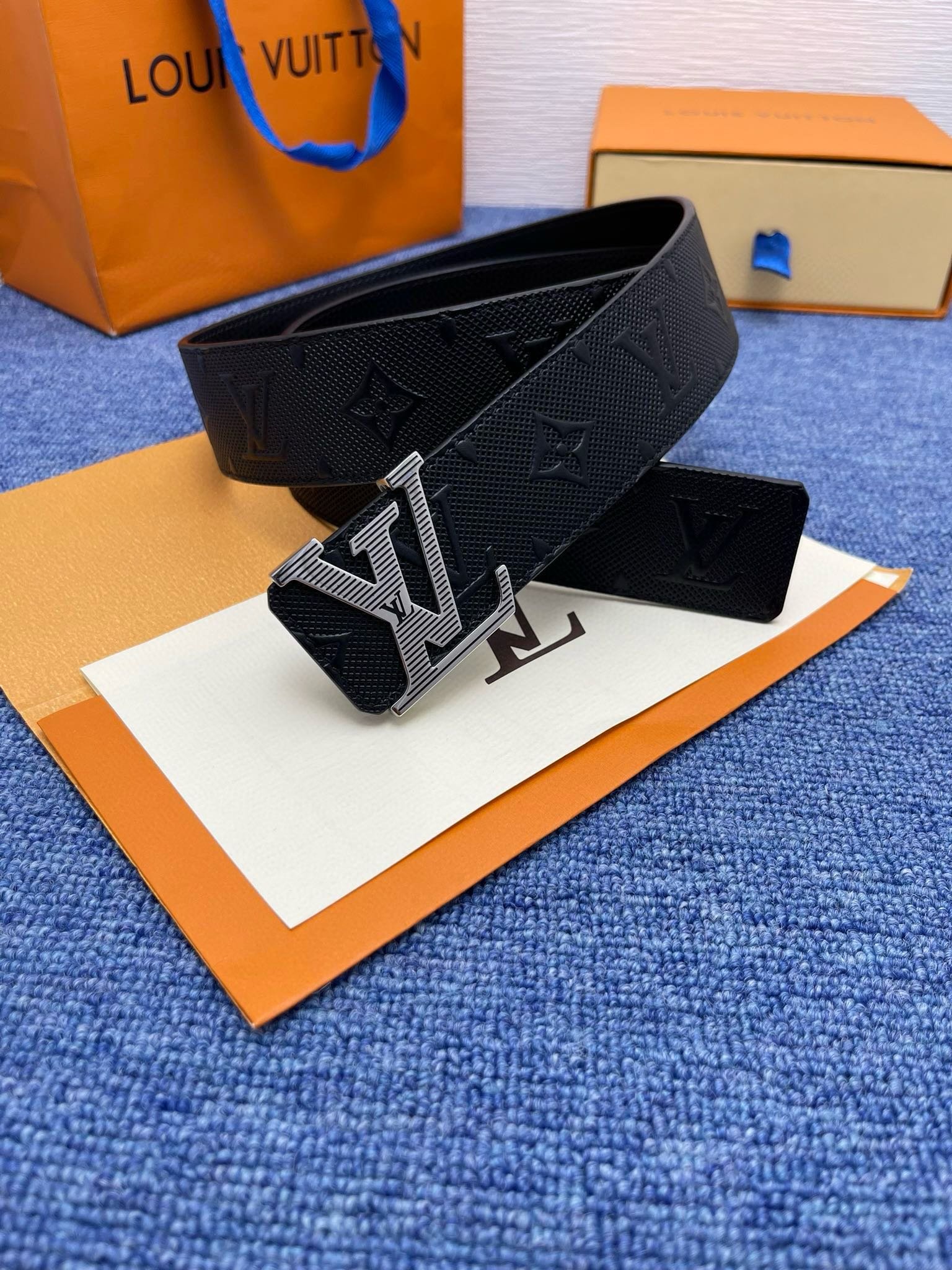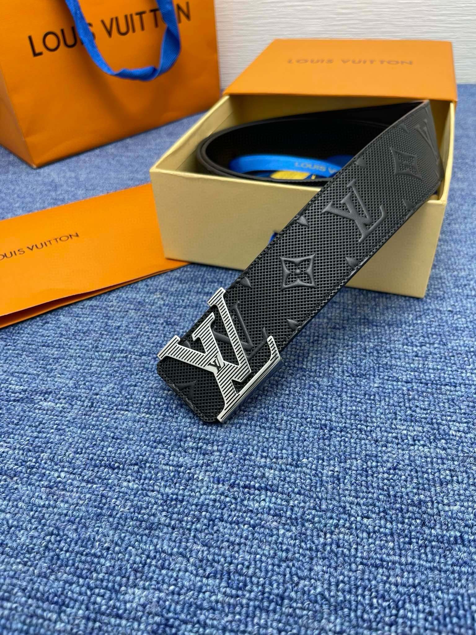 Louis Vuitton’s silver V-buckle black textured belt is made of top-quality leather, which is soft and elastic to the touch, showing a deep and low-key black charm. The belt buckle is made of exquisite silver metal and is engraved with the brand’s iconic “LV” letter pattern, highlighting the brand’s unique noble temperament.