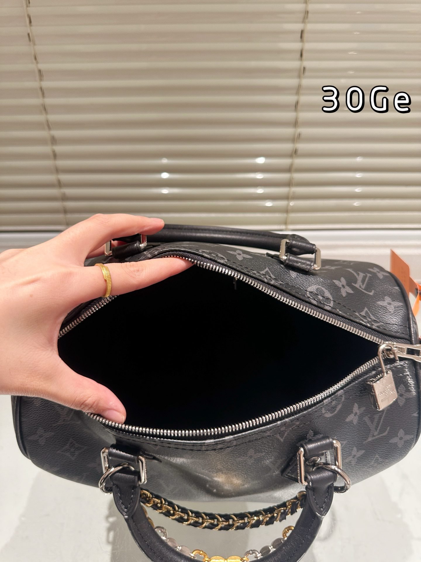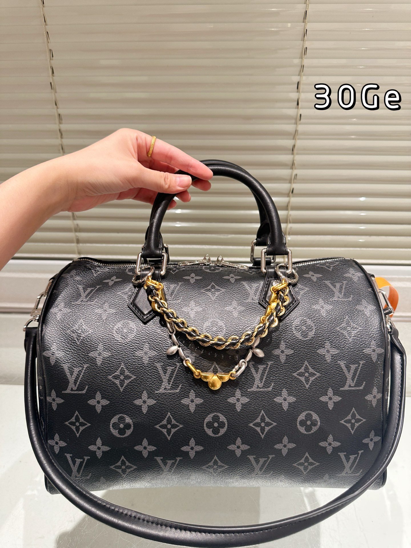 This Louis Vuitton Speedy 30 bag showcases premium cowhide craftsmanship, featuring the iconic monogram pattern in a sleek black finish, a 30cm size, and eye-catching mixed-metal chain accents. With Louis Vuitton’s legacy of exceptional design and material excellence, this bag seamlessly merges classic heritage with modern glamour. Perfect for those who appreciate a blend of tactile luxury and bold styling, it makes a sophisticated statement suitable for any occasion, from daily commutes to upscale gatherings.