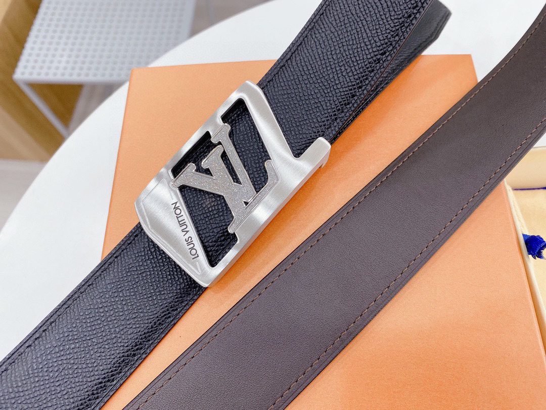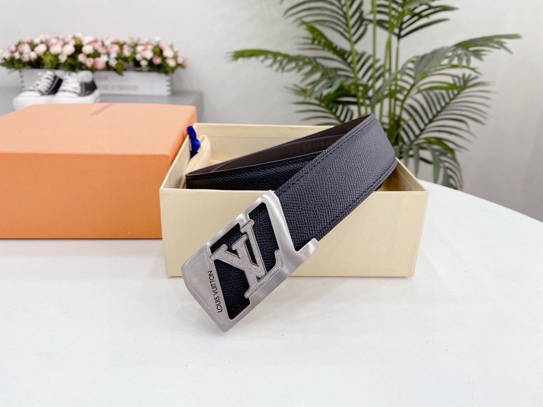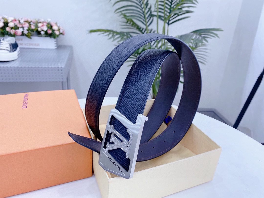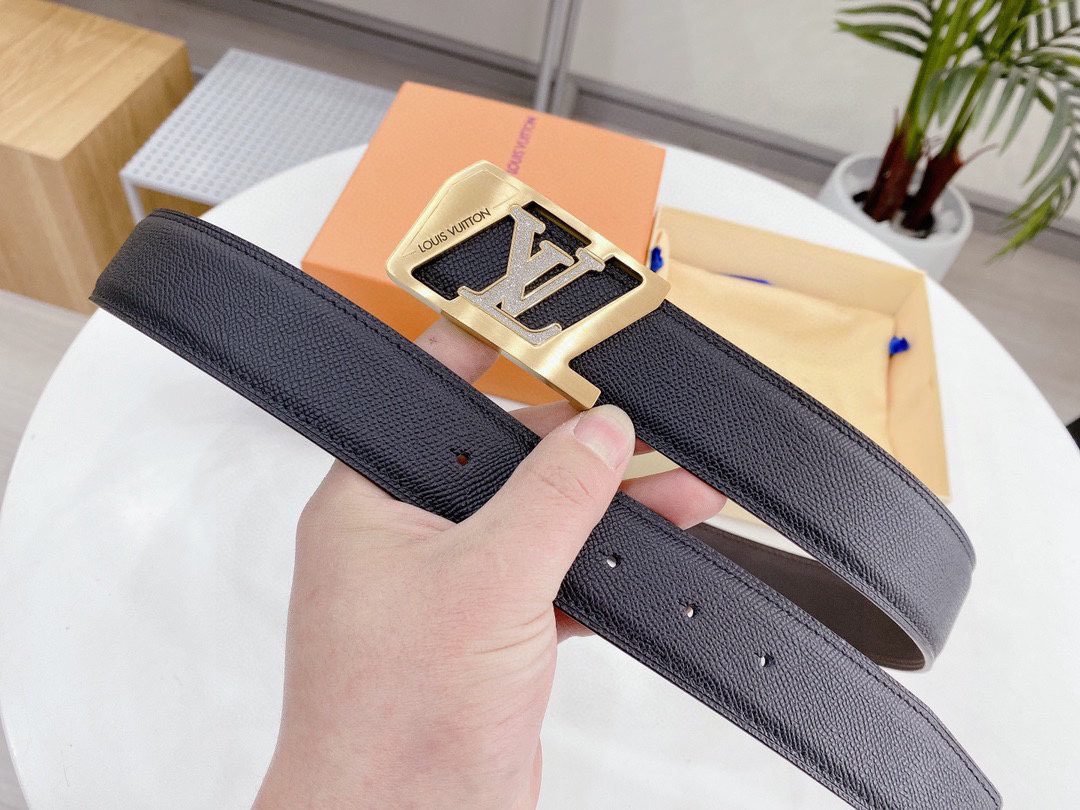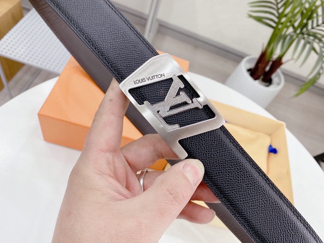 Home Belt LV belt Louis Vuitton square buckle black textured belt, simple and elegant, noble and elegant