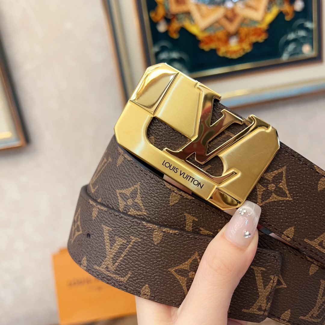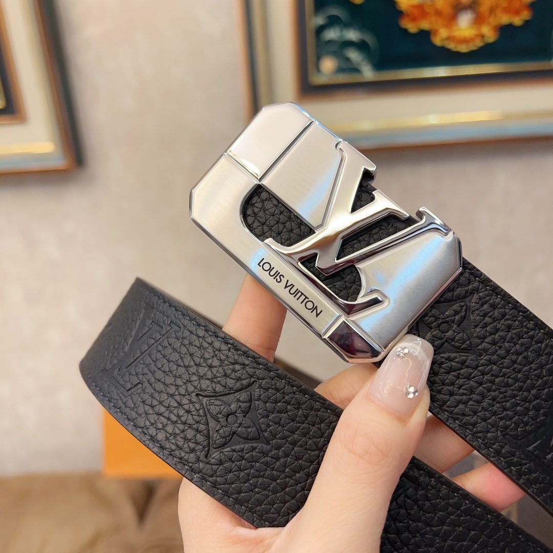 This Louis Vuitton square buckle textured belt cleverly combines the brand’s traditional elements with modern design. The belt is made of top-quality leather, which has a delicate touch and excellent durability. The metal “LV” logo fastener shines with a low-key and luxurious luster, highlighting the wearer’s distinguished status.