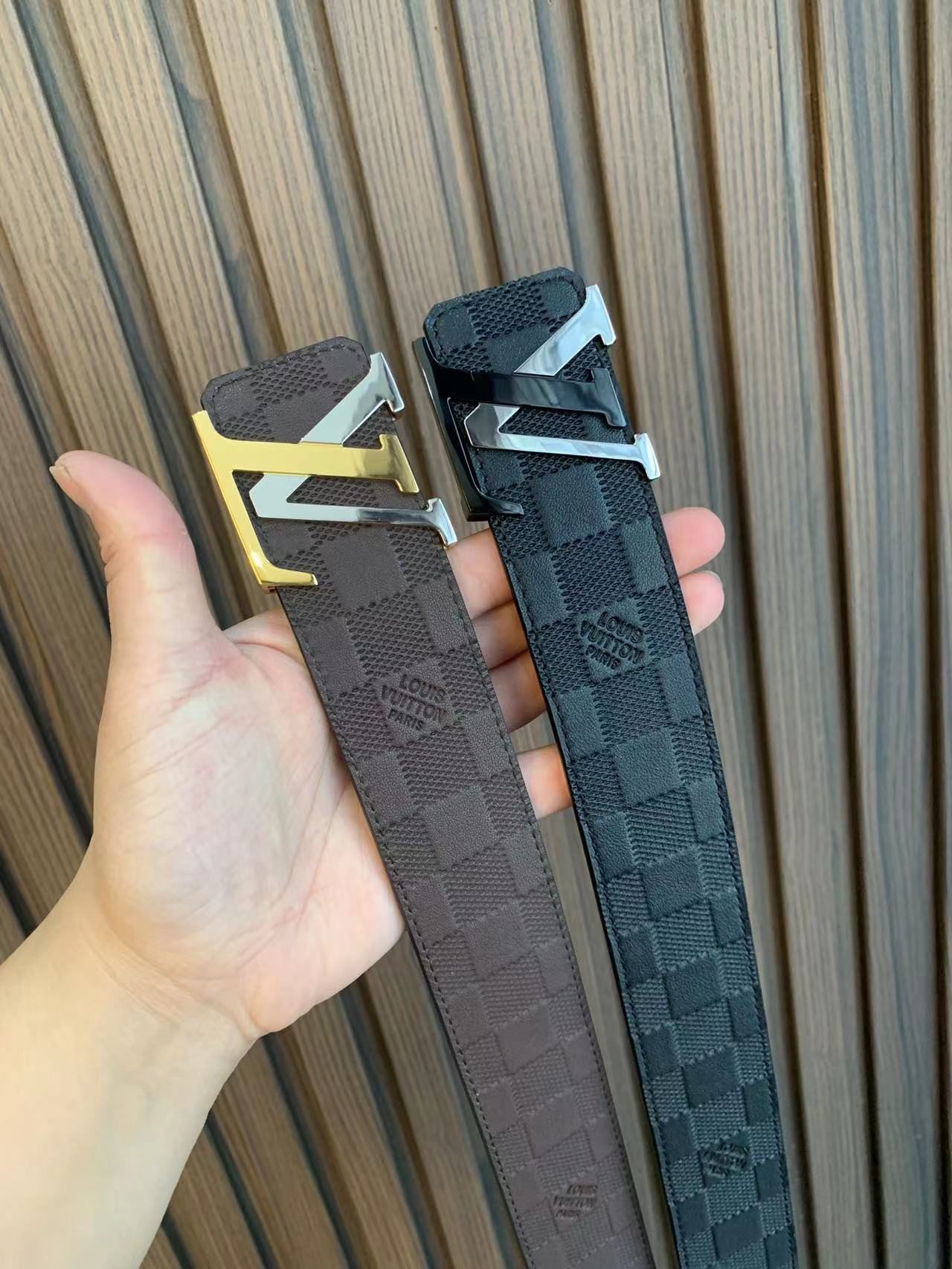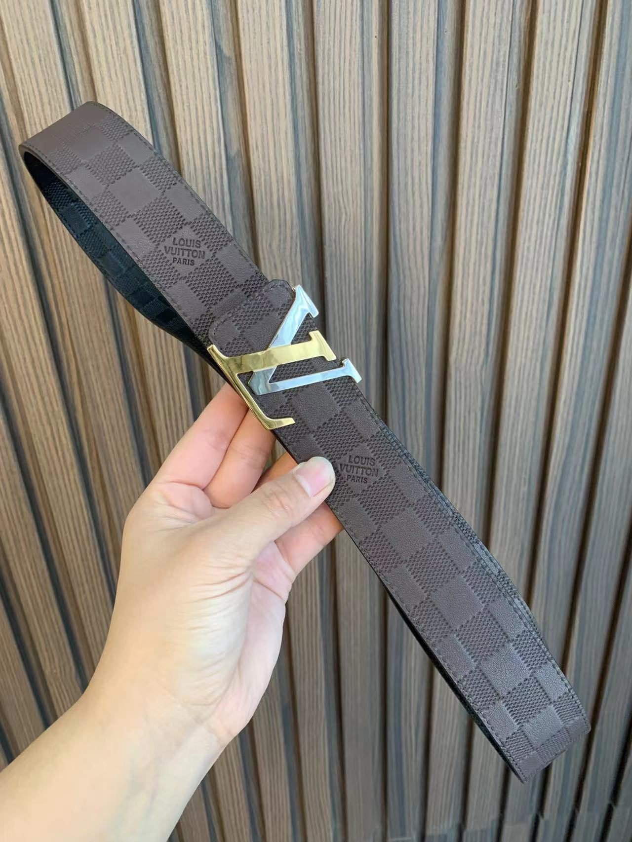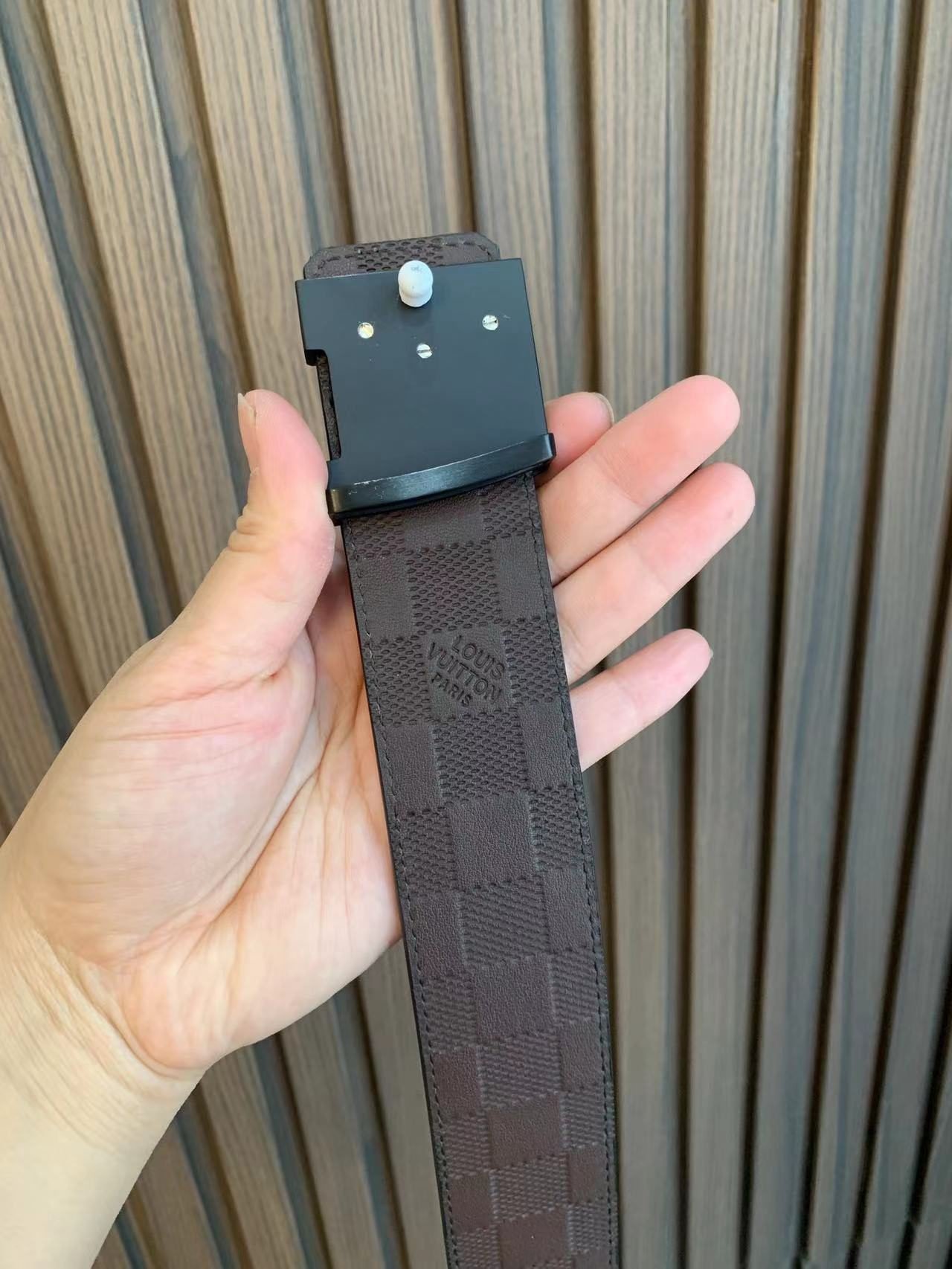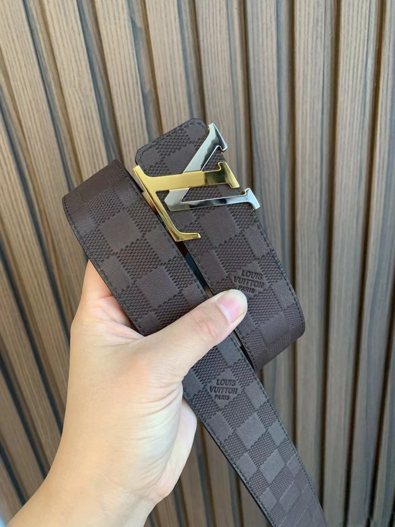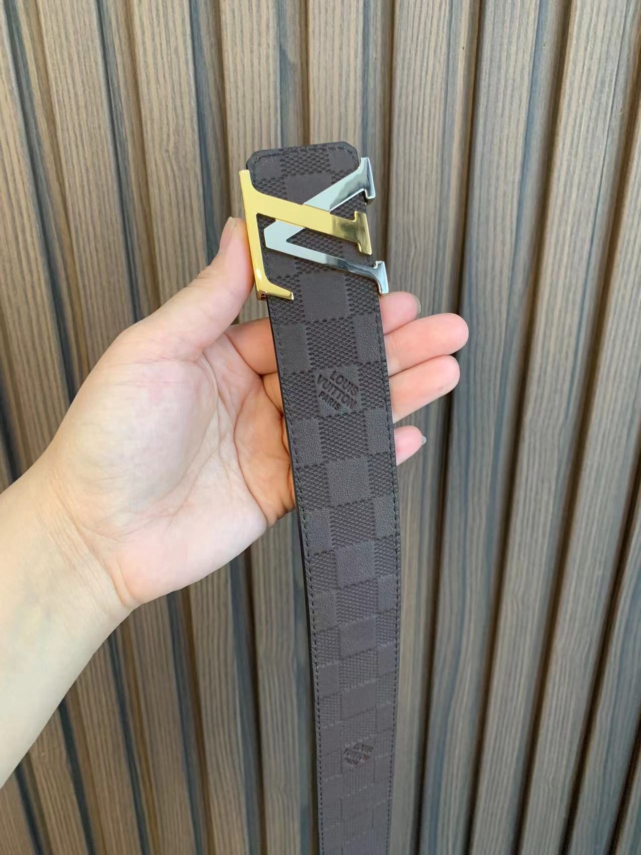 This Louis Vuitton two-tone buckle check belt highlights the brand’s extraordinary charm with its exquisite and elegant design and impeccable craftsmanship. The belt is made of high-quality leather, with soft leather and warm color, showing low-key luxury. The buckles and fasteners are made of metal and are engraved with the brand’s iconic “LOUIS VUITTON”, showing their distinguished status.