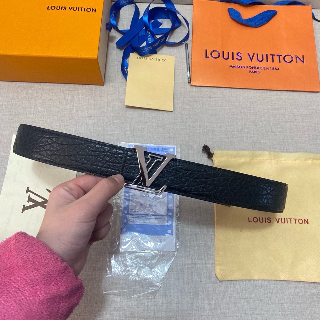 This Louis Vuitton V-buckle black belt demonstrates the brand’s nobility and luxury with its excellent craftsmanship and ultimate quality. The belt is made of top-grade black leather, with a shiny surface and a soft and comfortable feel, highlighting a man’s taste and charm.