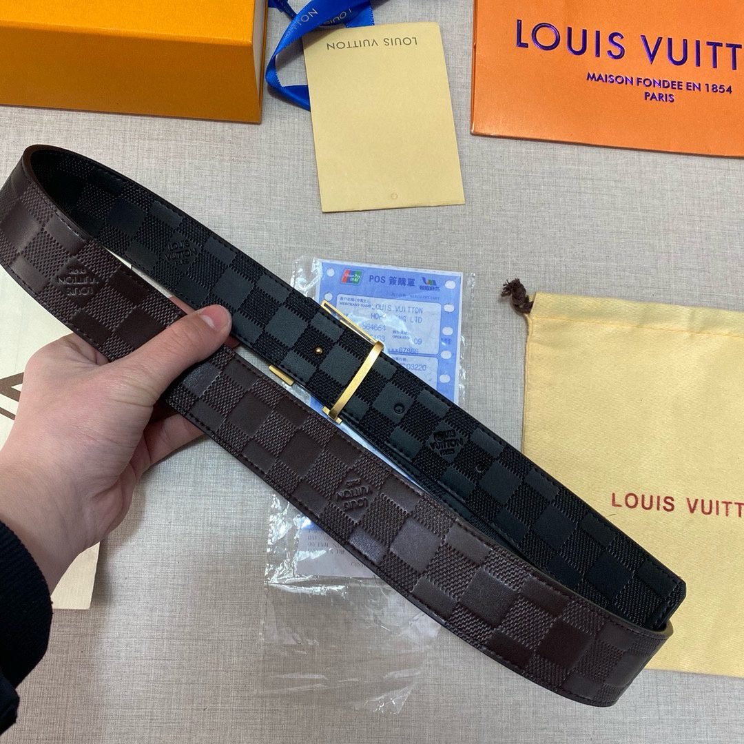 This Louis Vuitton V-buckle black plaid belt, with its unique black tone and perfect combination of LV logo, shows the brand’s consistent sophistication and luxury. The belt is made of top-quality leather, which is soft and delicate to the touch, while also being durable and wear-resistant. The metal buckle has an exquisite design and bright luster, highlighting the brand’s excellent quality.