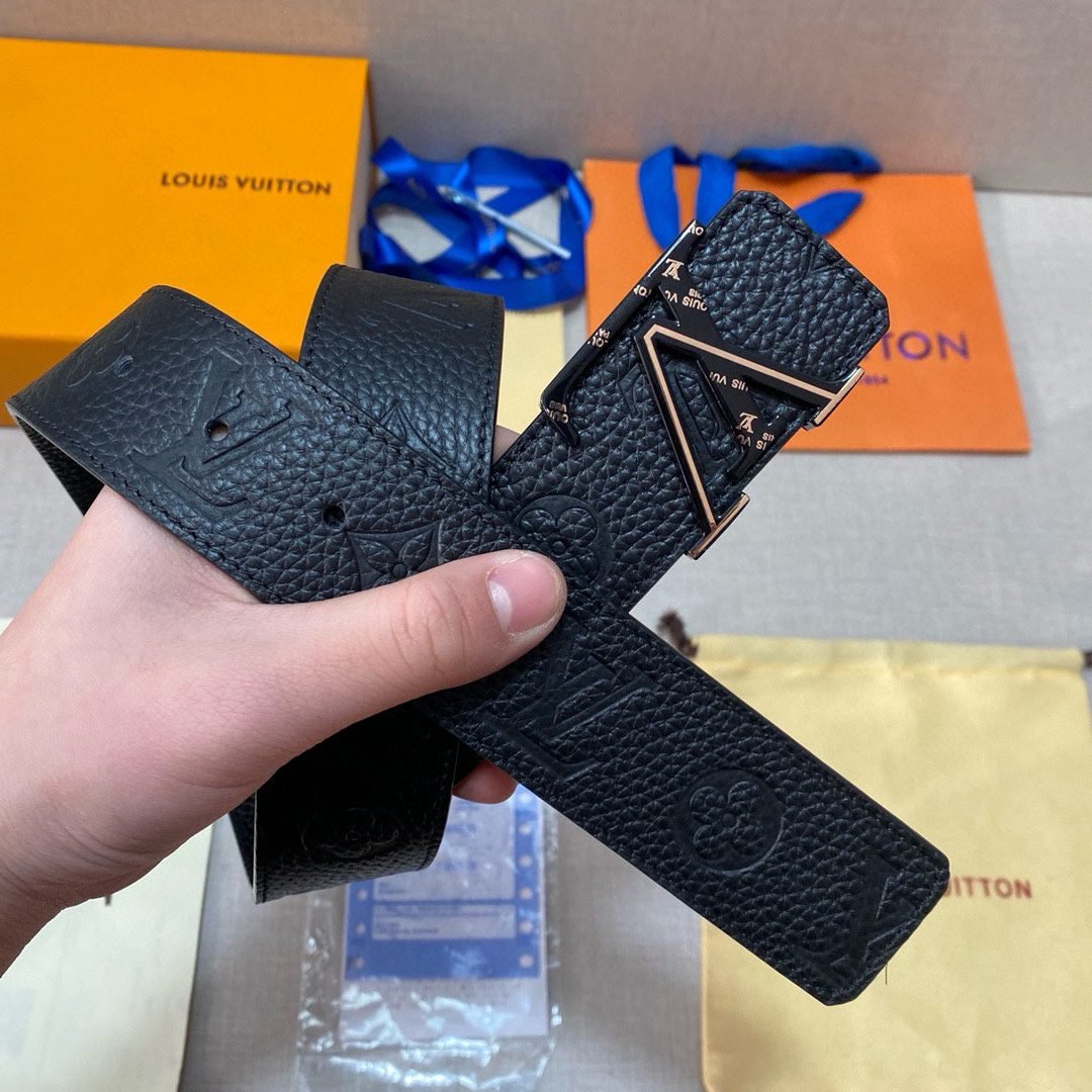 Louis Vuitton V-buckle black textured belt interprets the brand’s nobility and classics with ultimate craftsmanship and material selection. The belt is made of high-quality black leather, which has been carefully polished to have a warm luster and a soft and delicate touch. The belt buckle is inlaid with a dazzling metal “LV” logo, which is simple yet gorgeous, highlighting the wearer’s extraordinary taste.