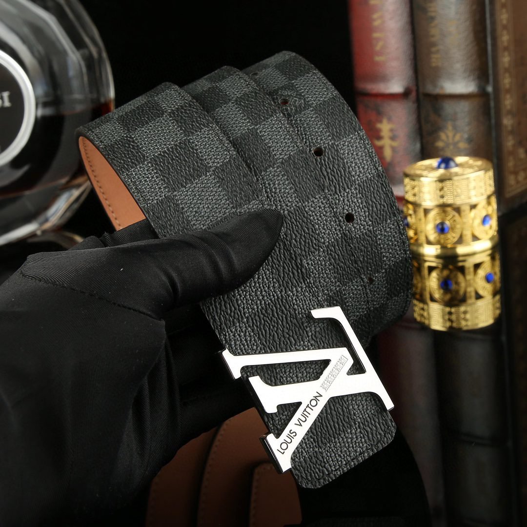 Home Belt LV belt Louis Vuitton V-buckle black textured belt, simple and elegant, noble and elegant