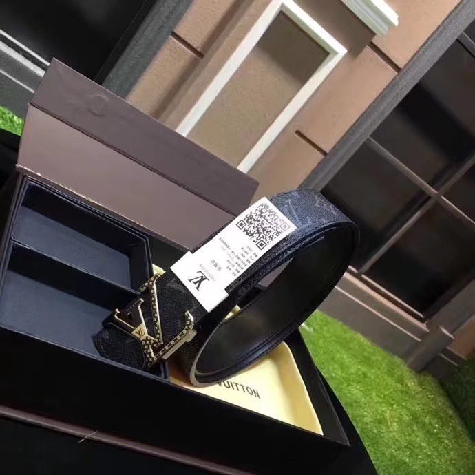 This Louis Vuitton V-shaped buckle black textured belt shows an unparalleled sense of luxury with its classic and unique design. The top-grade black leather material is selected, and the surface is specially treated to present a delicate texture and elegant luster. The belt buckle head is made of metal and is inlaid with the brand’s iconic “LV” pattern, which is shiny and eye-catching.