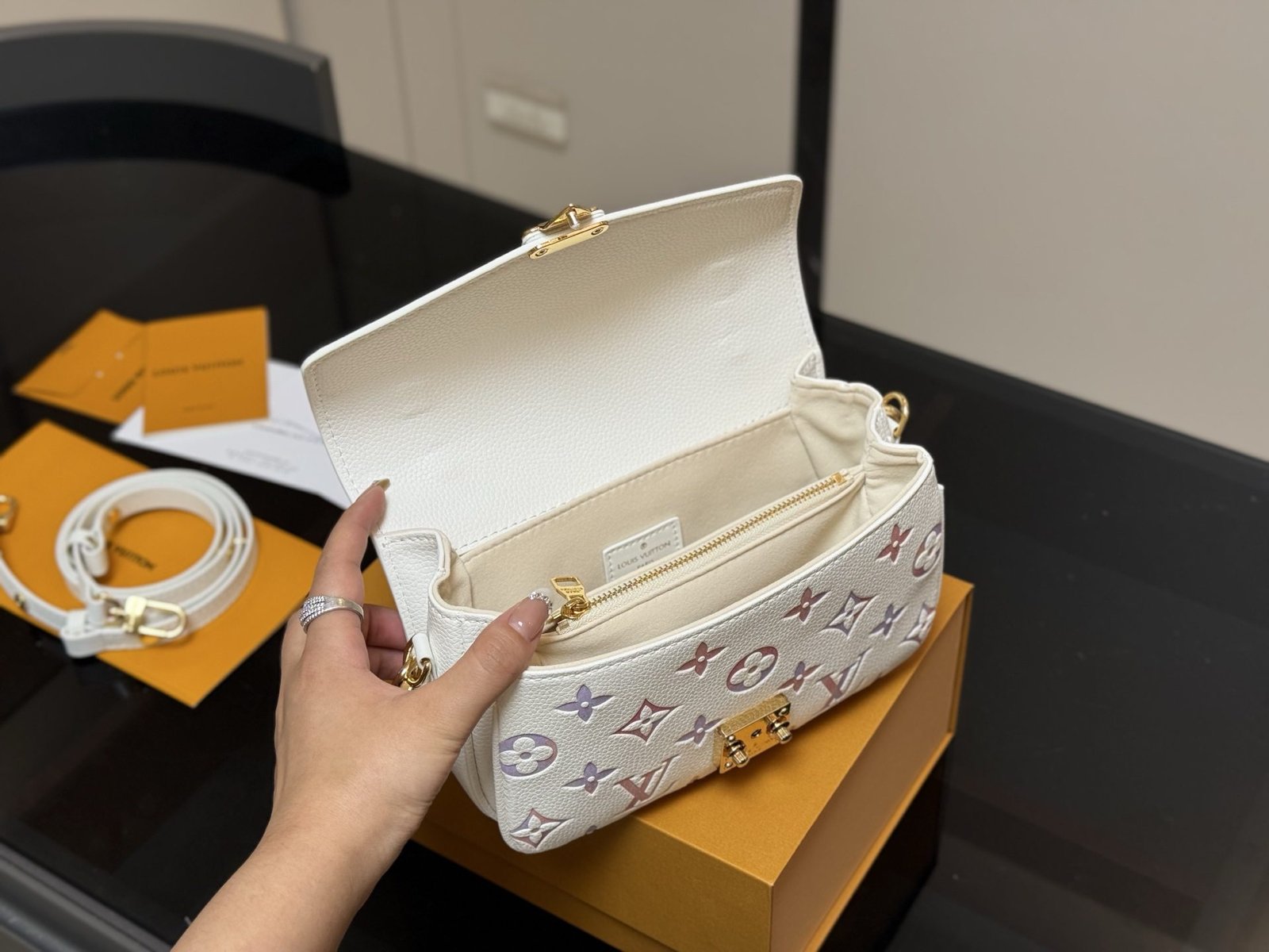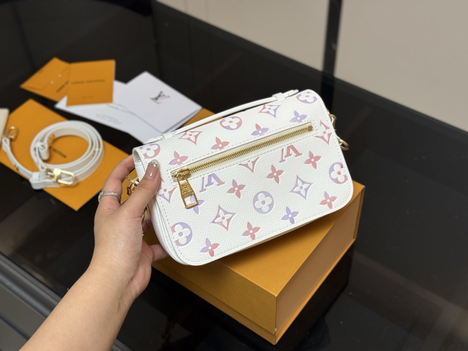 The LV shopping bag features a concealed strap design, allowing for both shoulder and hand carrying