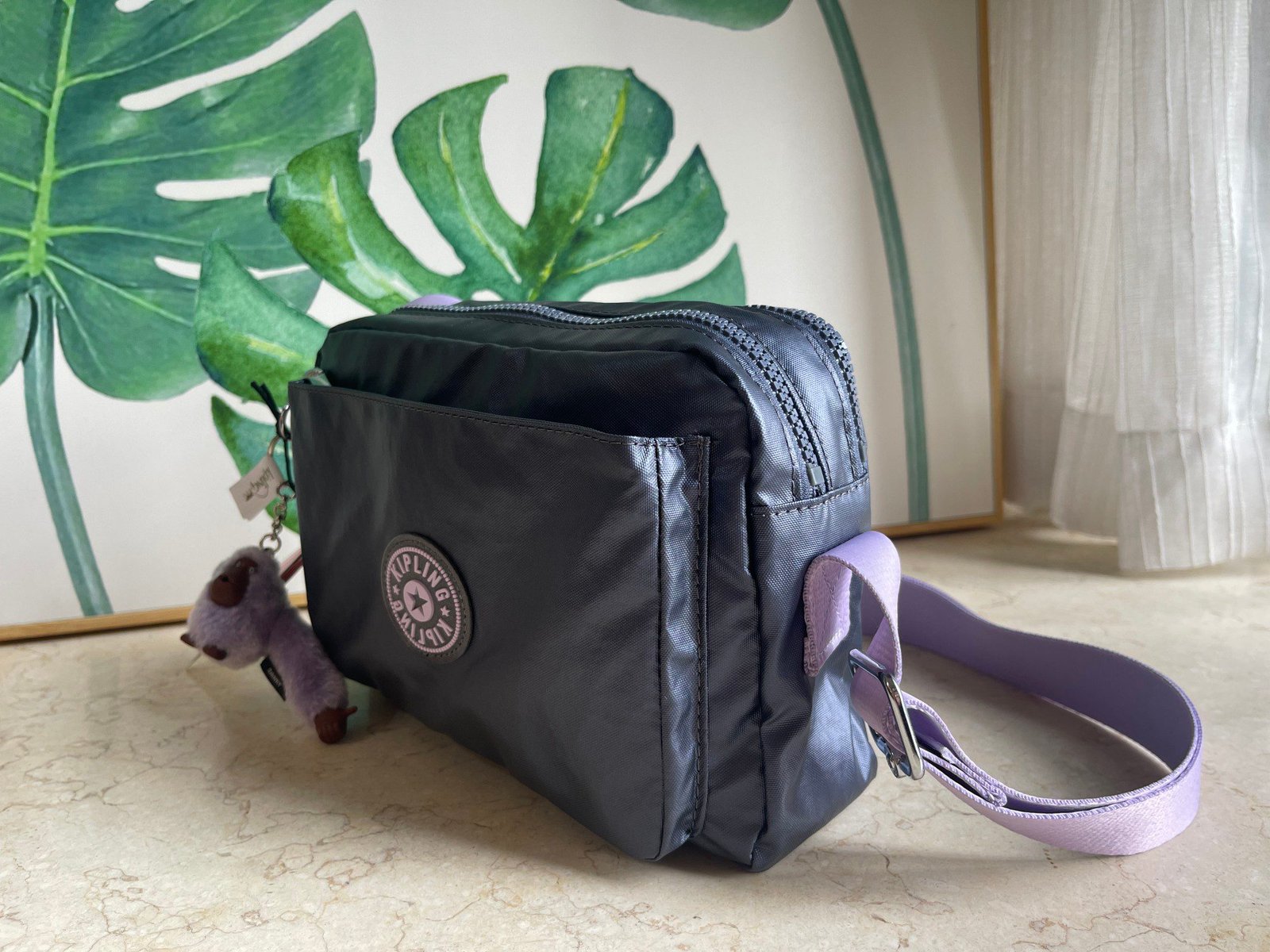 #Medium crossbody bag, metal navy blue Kipling summer new item: fashionable, casual, lightweight, versatile single shoulder crossbody bag K16237, the same model K16847 has been shipped, with 4 zippers and a large bag capacity of 24cm in length, 17cm in height, and 9cm in width