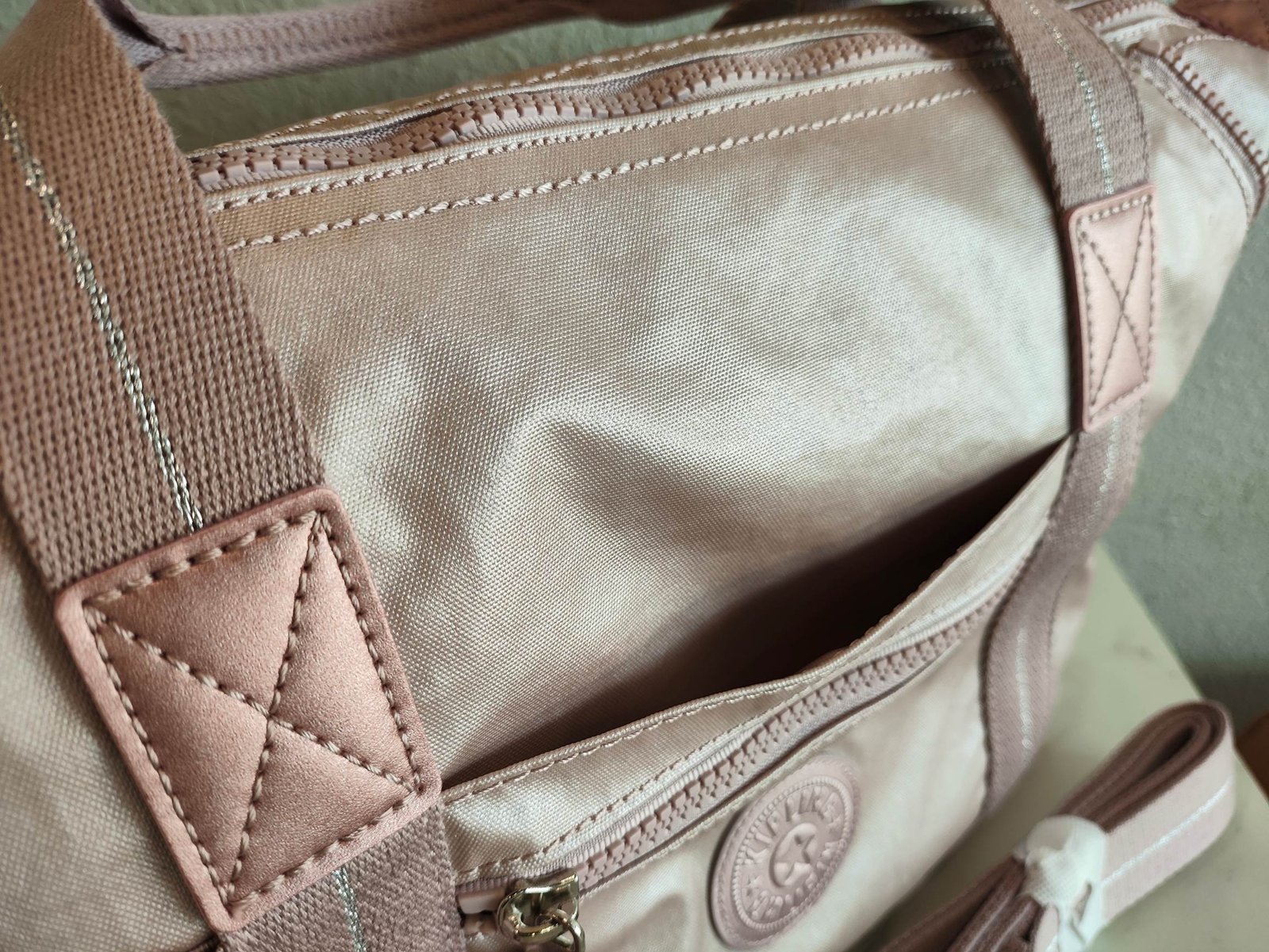 Medium Handle, Metallic Pink, KIPLING Women’s Casual Crossbody Tote Bag K13848 Medium size, plenty of space in the main pocket, zippered front pocket and open front pocket for easy access, angled zippers on both sides make the bag more unique, suitable for various occasions. Size: 44X27X20 (cm)