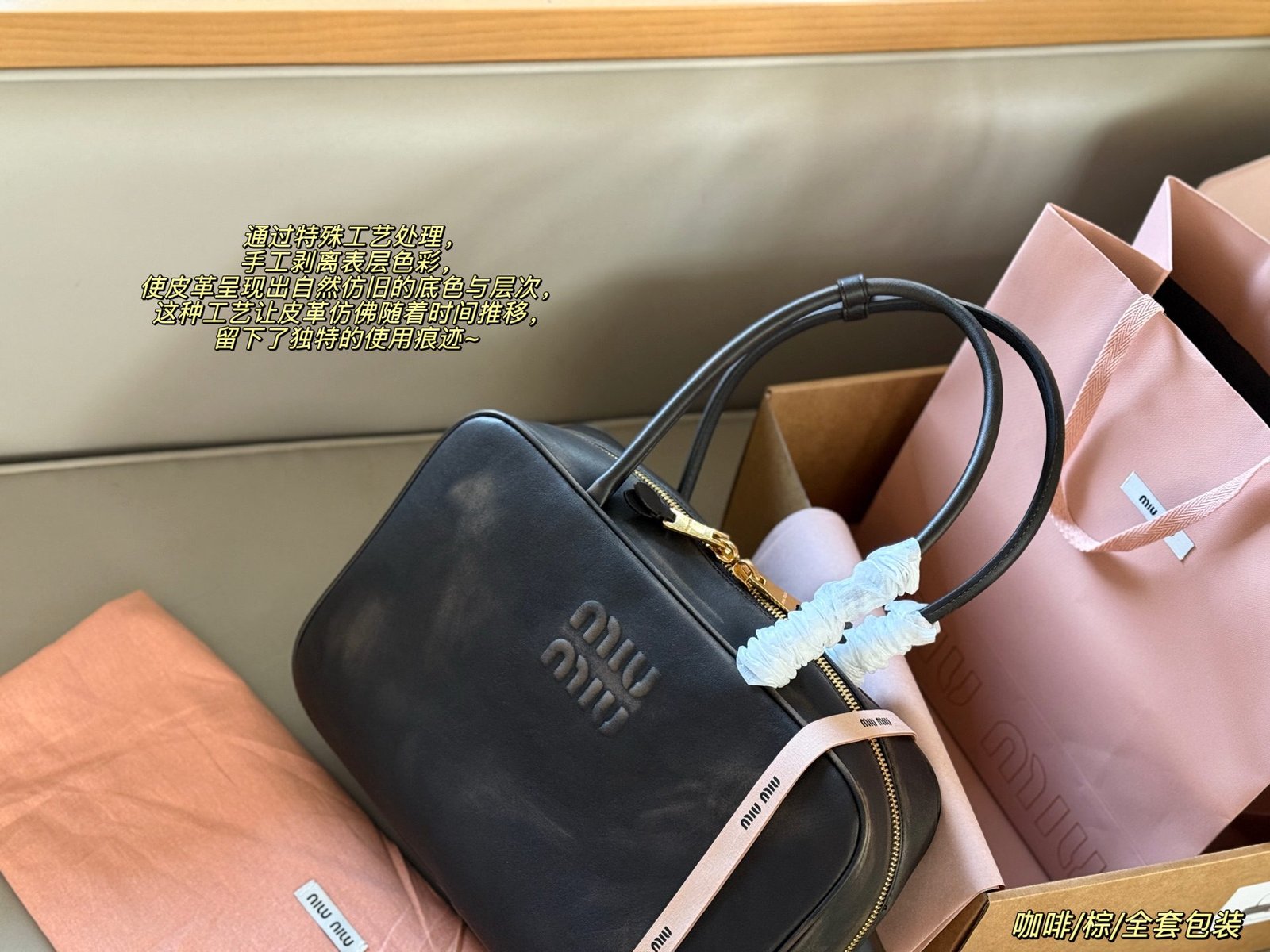 This Miu Miu distressed tote bag features the brand’s embossed logo and retro-inspired design, crafted with a vintage distressed finish and a spacious silhouette of 35×22cm. Embodying Miu Miu’s legacy of nostalgic luxury and functional style, the bag merges tactile texture with ample storage. Perfect for those who appreciate distinct branding, meticulous craftsmanship, and a statement piece that adds a touch of vintage refinement to winter looks—ideal for elevating everyday ensembles with undeniable charm and practicality.
