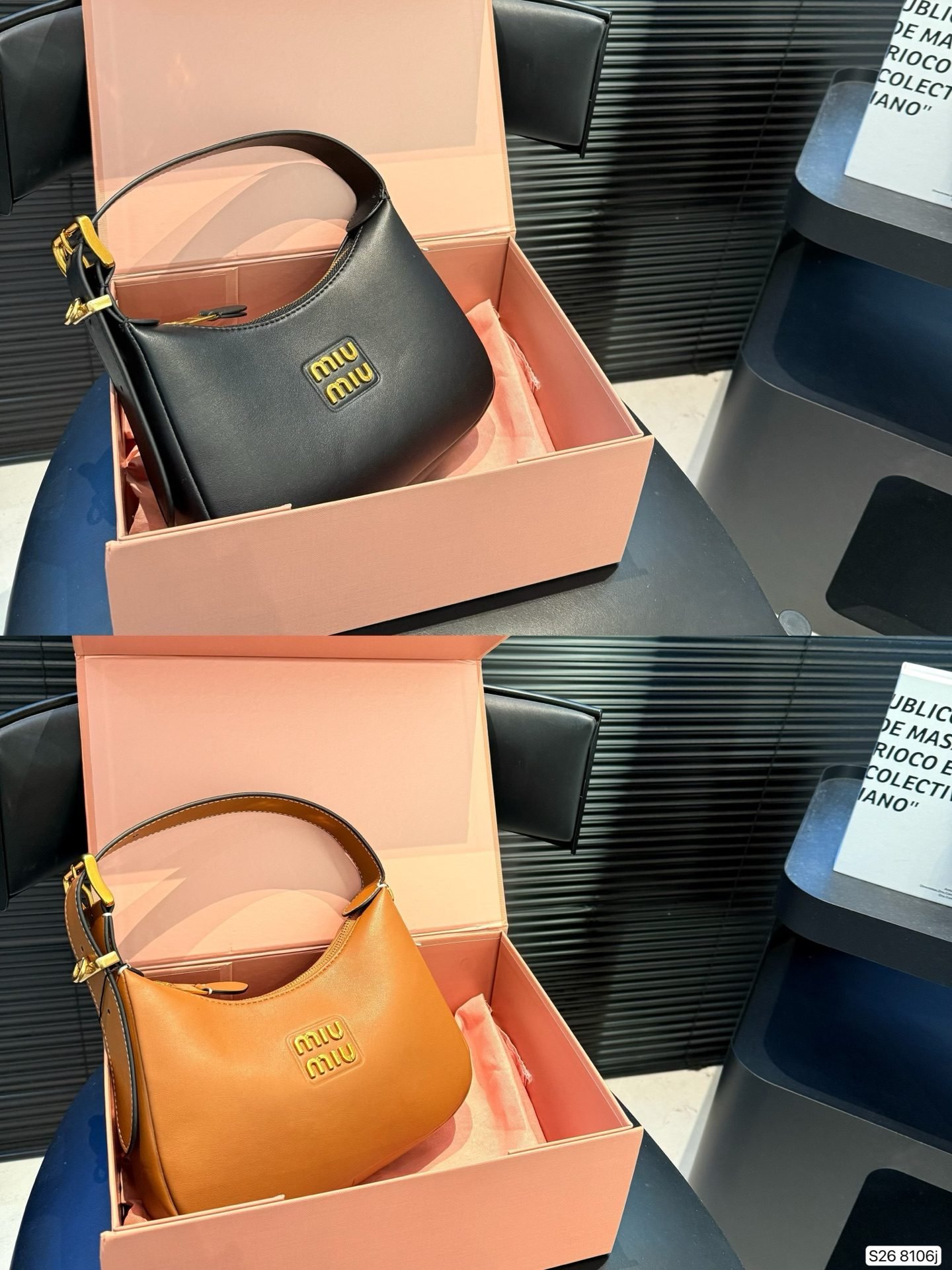 This Miu Miu leather hobo bag features the brand’s bold logo and refined design, crafted from premium leather with a structured silhouette of 22×13cm. Embodying Miu Miu’s legacy of sophisticated charm and versatile style, the bag is available in classic hues like black and tan, merging sleek aesthetics with everyday wearability. Perfect for those who appreciate distinct branding, meticulous craftsmanship, and a statement piece that elevates any look—whether for casual outings or polished ensembles—with undeniable elegance and character.