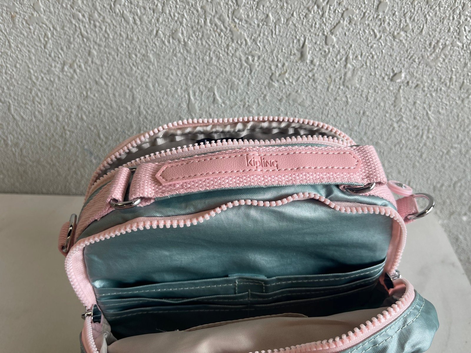 New color, Metal Elf Green, Kipling2050/04472, The portable, crossbody, and backpack multi-purpose model can accommodate more personal items, such as umbrellas and small water bottles, and the rich compartment design facilitates better sorting and placement of objects. Multiple ways of wearing the back can be customized according to one’s needs and occasion. 10751688, size: 21x10x24cm