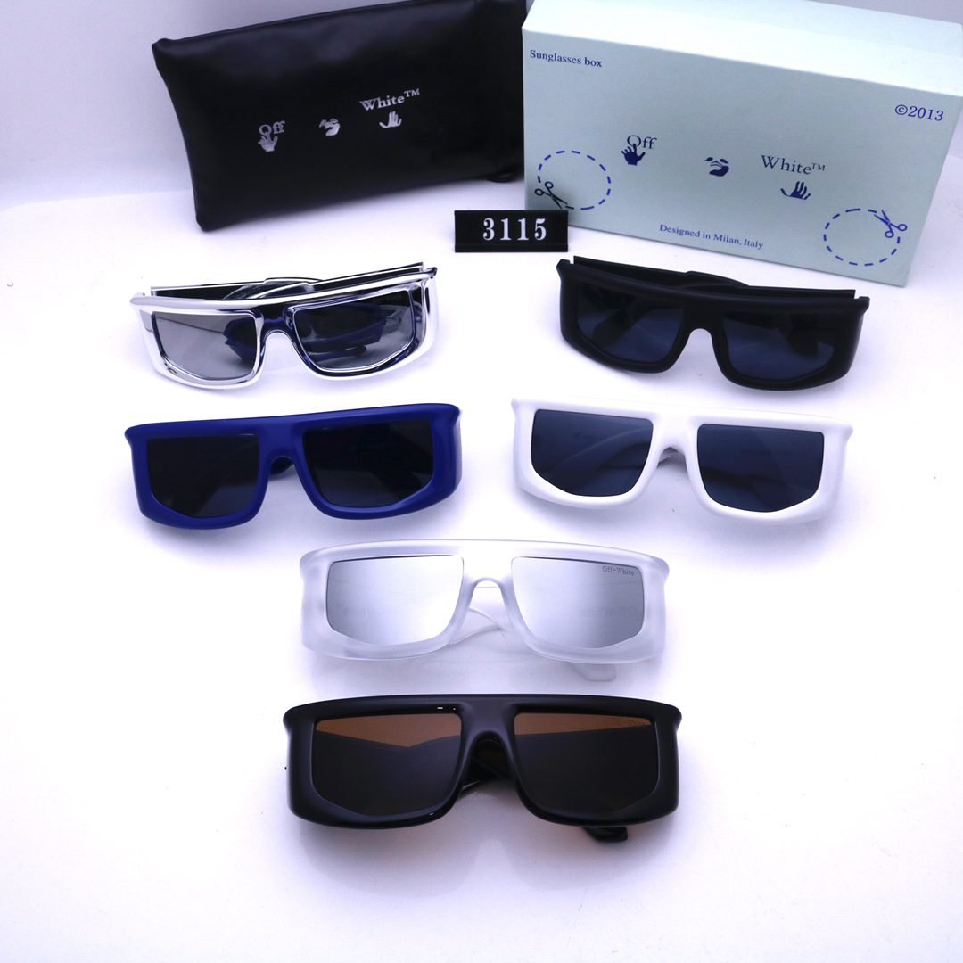The Off – White 3115 series sunglasses instantly catch the eye with their large – frame shape. They are rich and diverse in color, including cool black, bright silver, pure white, deep blue, etc., each full of trendy sense. Whether you go out daily or to trendy gathering places, wearing them can make you stand out in the crowd and fully show your personality and fashion~