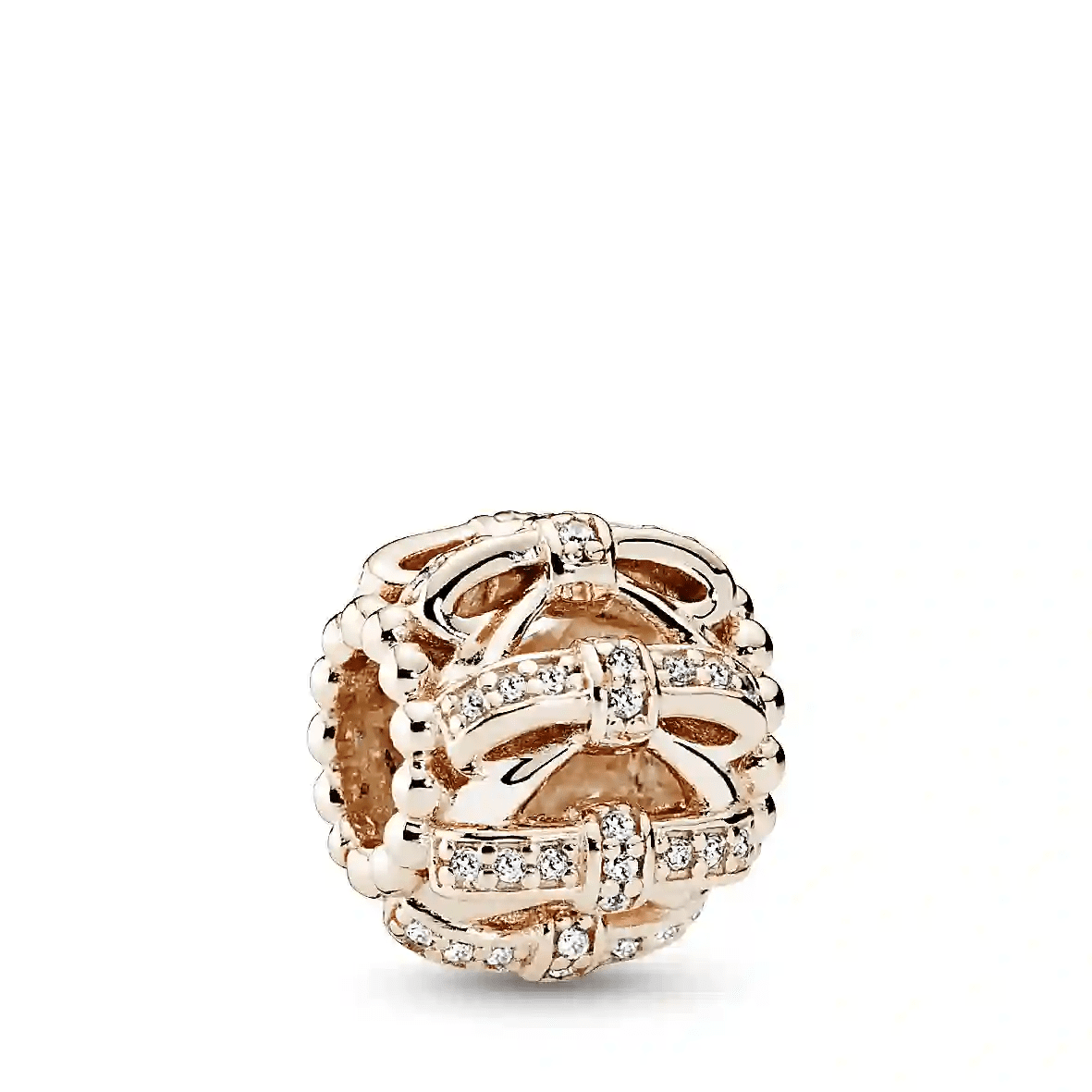 Pandora 925 silver 781779CZ rose gold hollow string decoration with multiple diamonds, inlaid beads, noble royal jewelry, minimalist design sense jewelry
