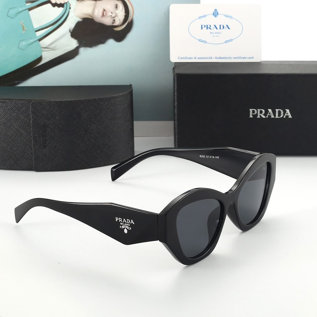 PRADA, This globally renowned luxury brand has always attracted countless consumers with its exquisite craftsmanship, excellent quality, and unparalleled fashion sense. The lenses are made with advanced technology and have anti UV and anti glare functions, which can effectively protect your eyes from sunlight damage. At the same time, the color of the lenses is moderate, which can block strong light without making the field of view too dim. Whether as a fashion accessory or for daily wear, this pair of sunglasses can add a touch of brightness to your look, showcasing your personality and taste. Come and buy now, let this pair of glasses add more brilliance and charm to your every day!