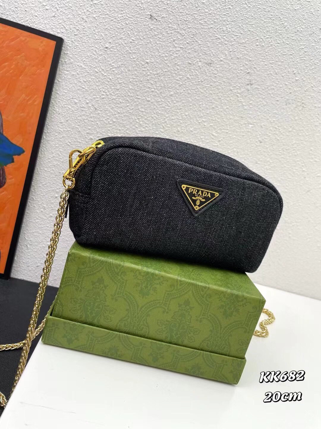 Retro denim Prada denim medieval bag Q cute to no friends, retro chain and this old sense of denim small bag is simply bright, the American Vintage atmosphere immediately appeared, super Q Meng can really put down any mobile phone, do not like to go out and bump bags of the collection of beauty is another choice 682