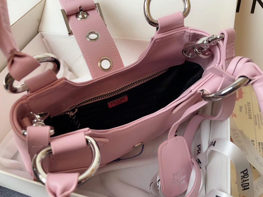 Home BAGS PRADA-BAG Prada leather Underarm bag pink 1BA381 size: 22.5cm