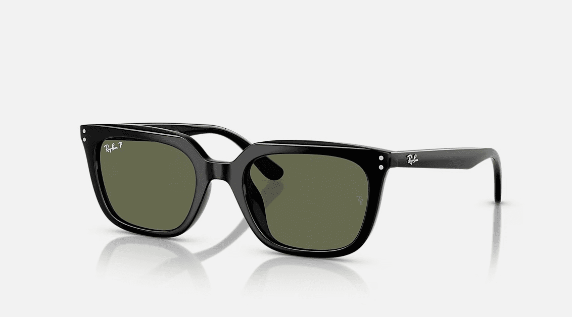 This Ray-Ban sunglasses features a retro square black frame design, with a high-quality glossy material that exudes a premium vibe. Paired with classic dark green lenses, it effectively blocks strong light while creating a lazy and casual fashion atmosphere. The iconic Ray-Ban logo on the temples and metal rivet details enhance the overall recognition. Perfect for daily commutes and travel styling, it’s a practical accessory to elevate your outfit’s texture.