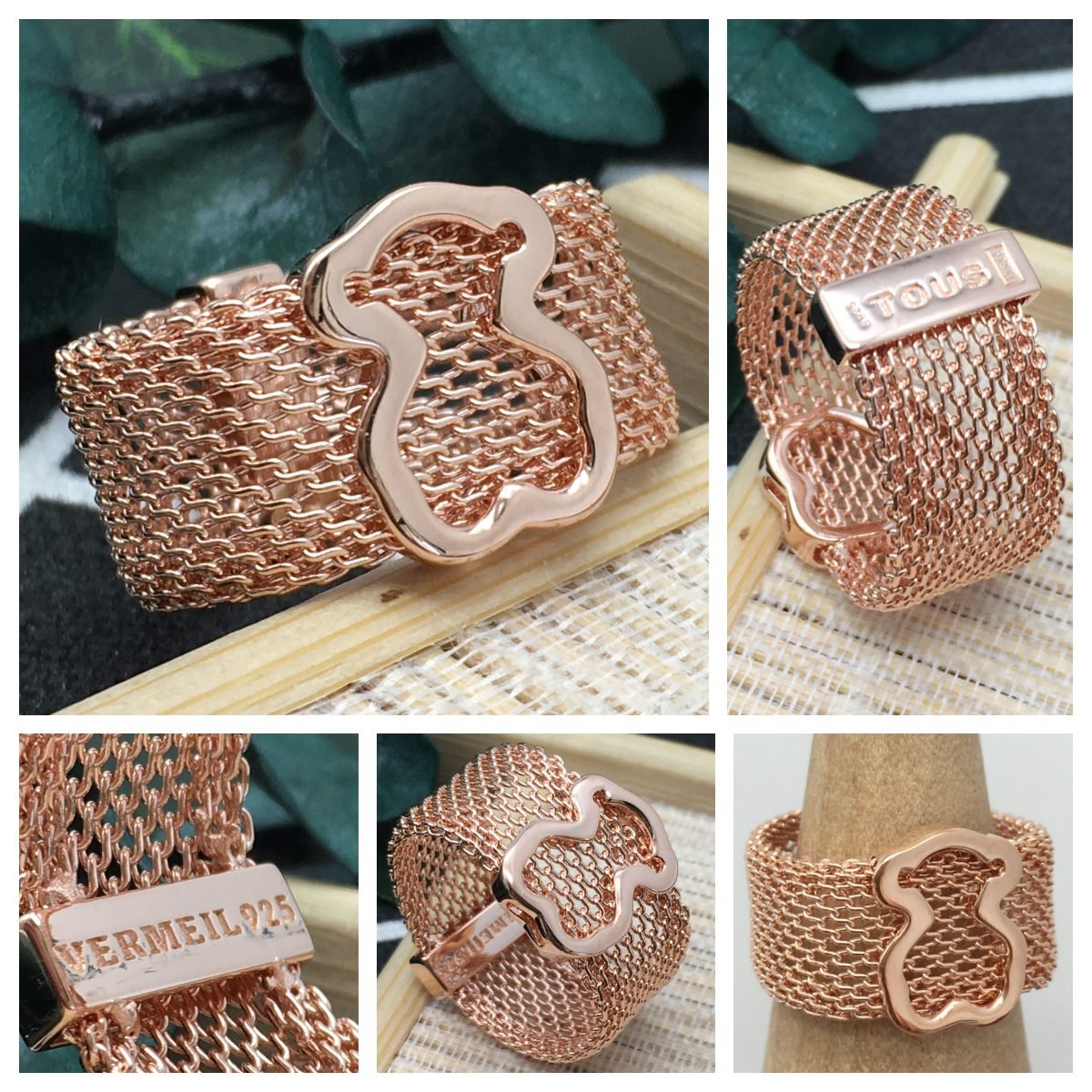 TOUS Icon Mesh ring in rose vermeil silver and rose IP steel. Width: 1 cm. Size: 1.35×1.11 cm. Vermeil: Sterling silver plated with a layer of 18kt rose gold.