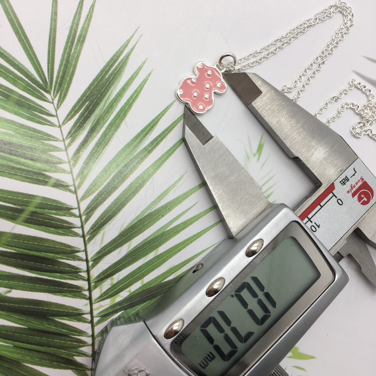 A dress or a low-cut T-shirt are twice the outfit when topped with a delicate, feminine necklace. This one in silver with our classic icon in pink enamel is perfect for it.