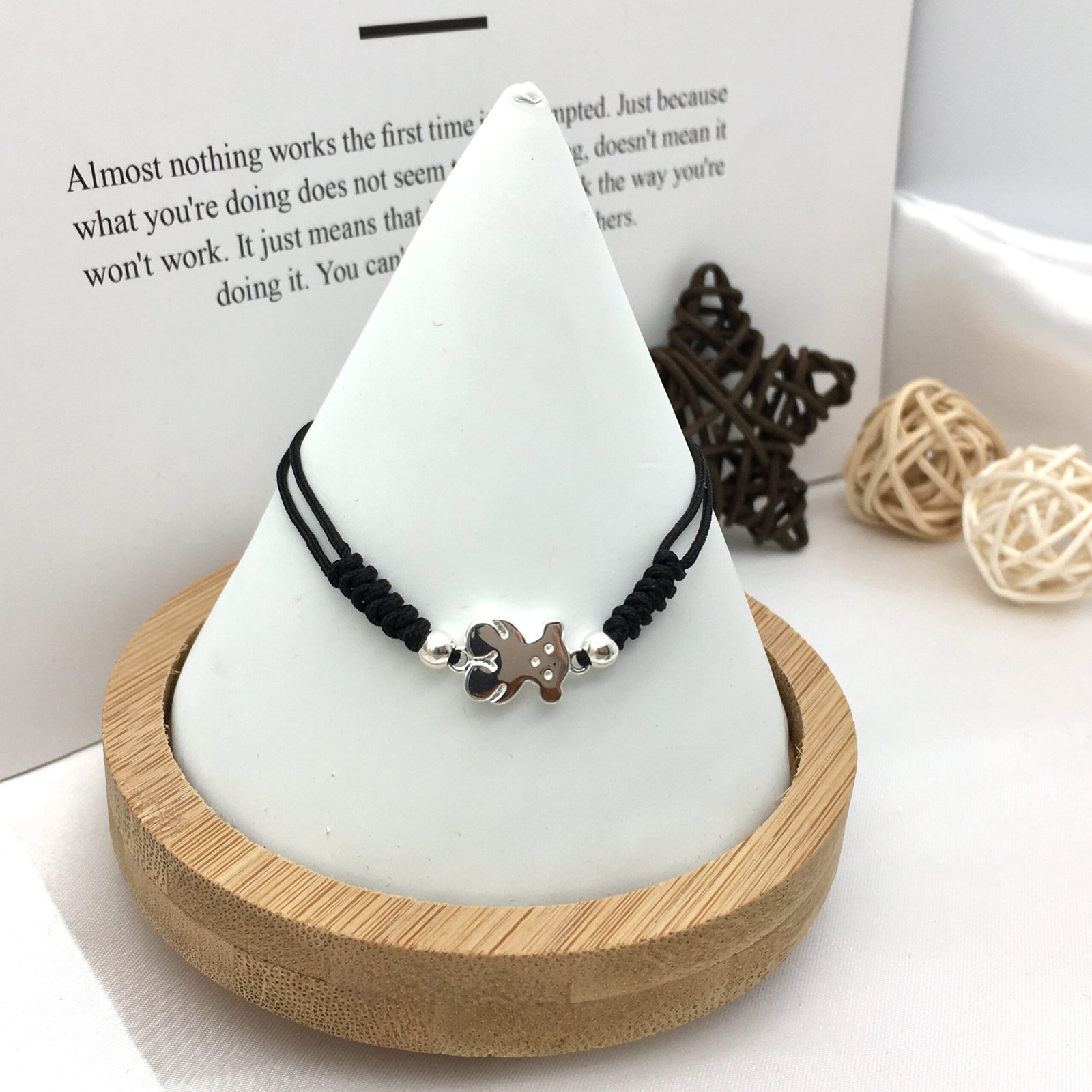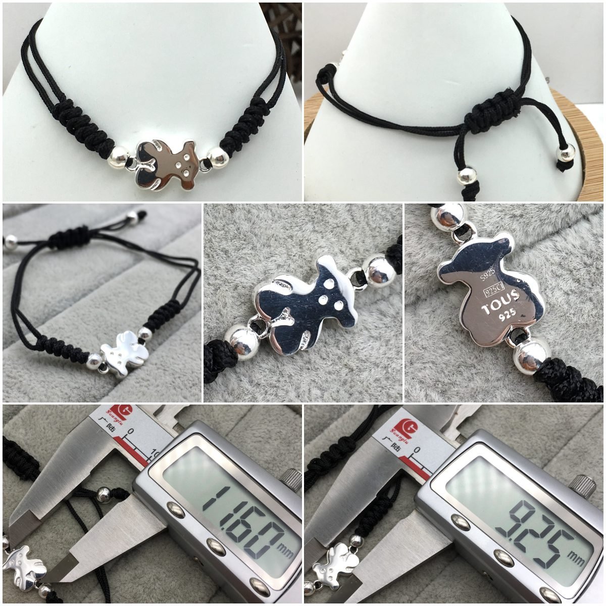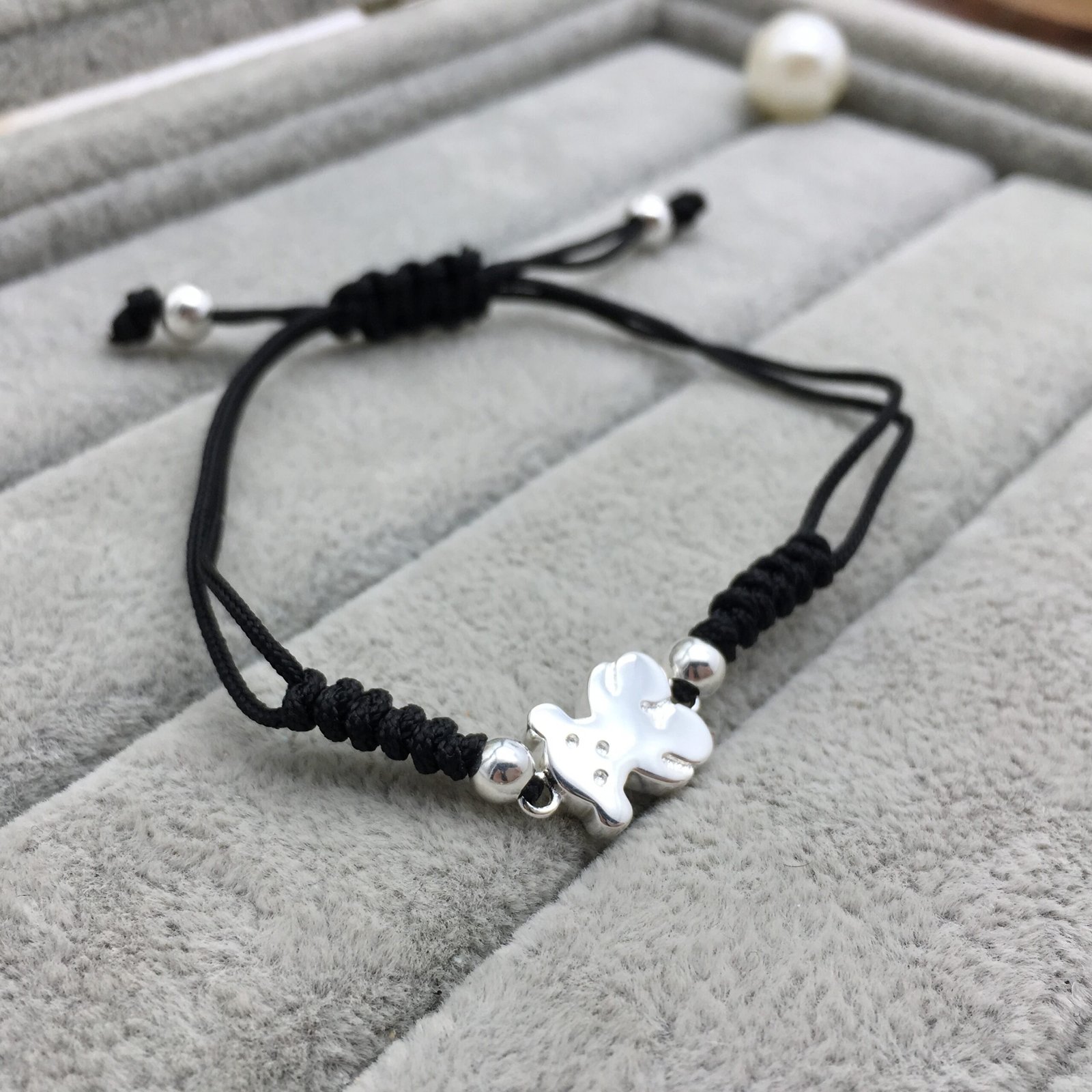 TOUS Sweet Dolls bracelet in sterling silver and black cord. Motif: 1,15 cm.