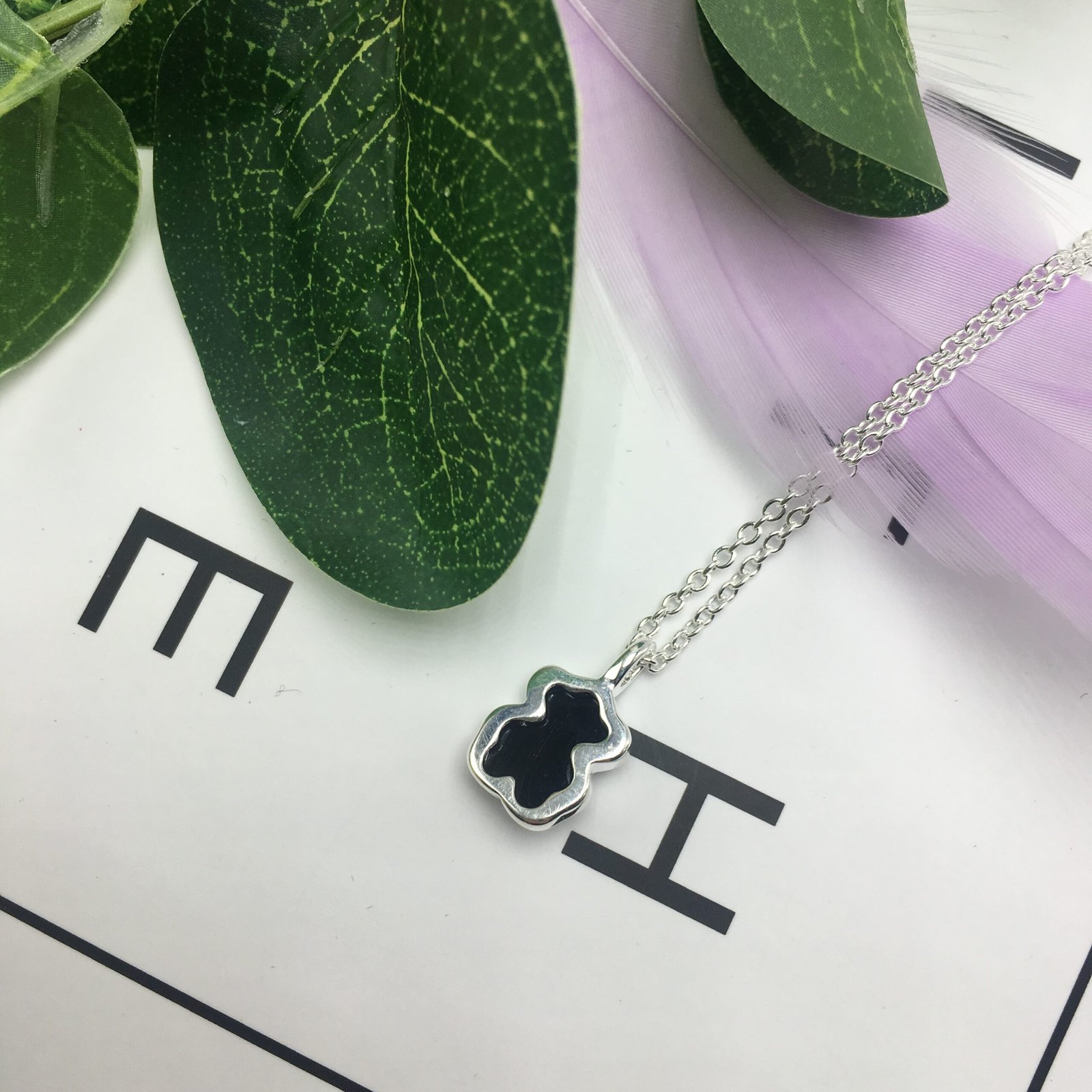 Our little bear is up for anything. And this time it’s bringing its “rockiest” look yet. Silver chain and onyx pendant. You’ll want to wear it every day because it’s one of our bestsellers.