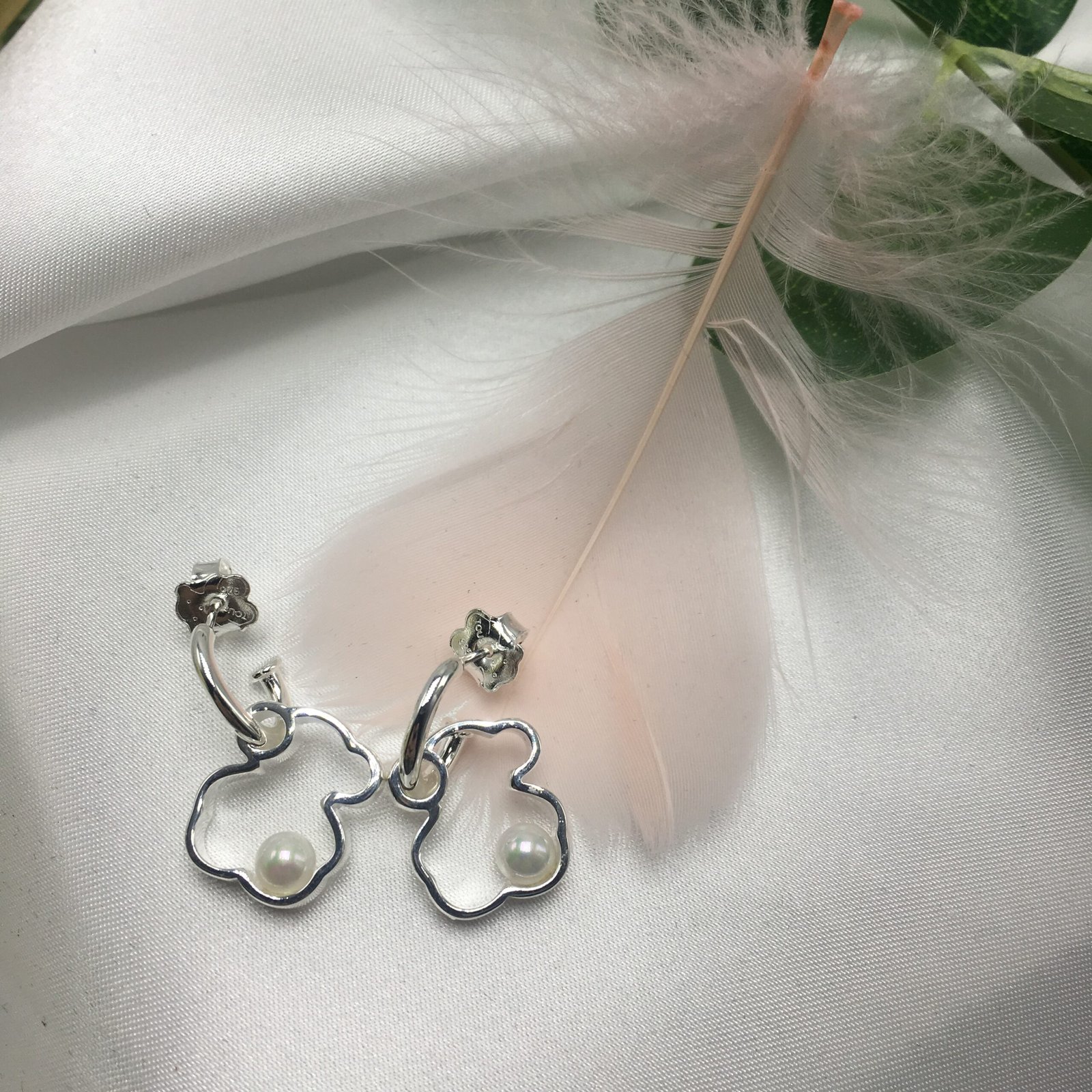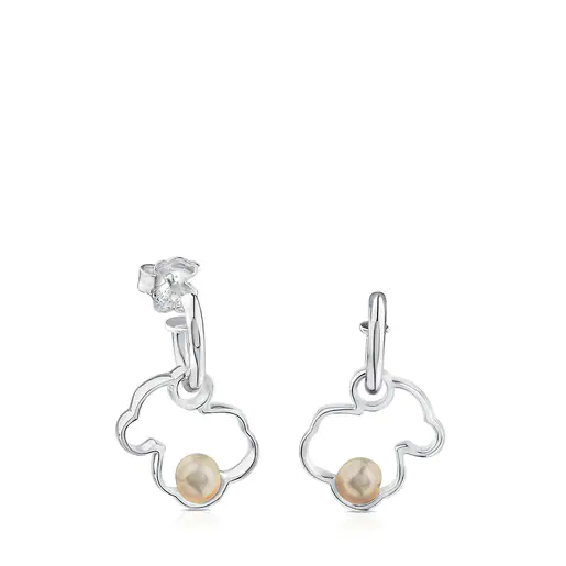 Silver TOUS Silueta Earrings with Pearl 1,6cm.