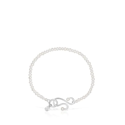 TOUS Tsuri cultured pearl bracelet with sterling silver motif with two cultured pearls. Size of cultured pearls: 3-3.5 mm. Motif size: 22 mm.
