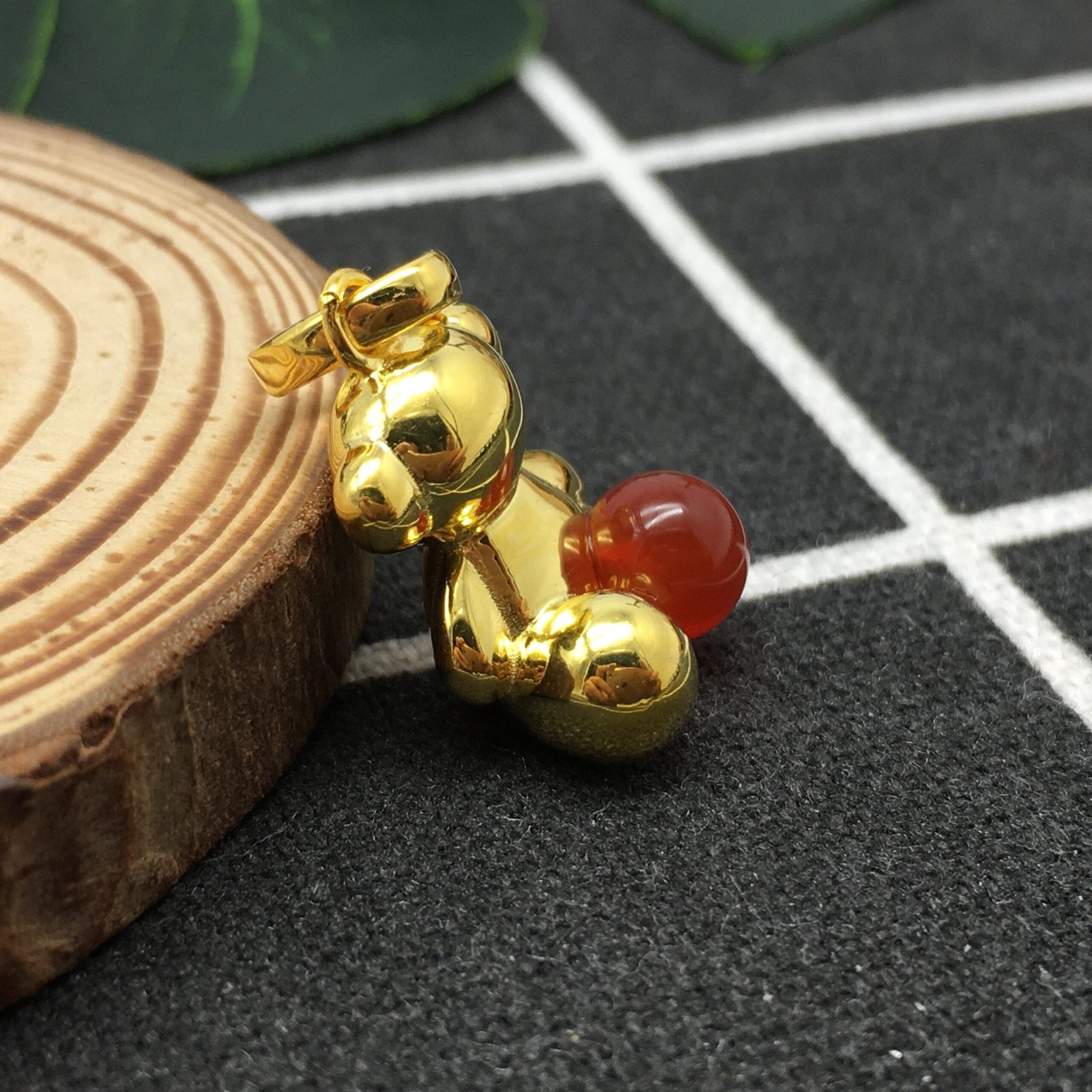Silver vermeil Bold Bear pendant with carnelian