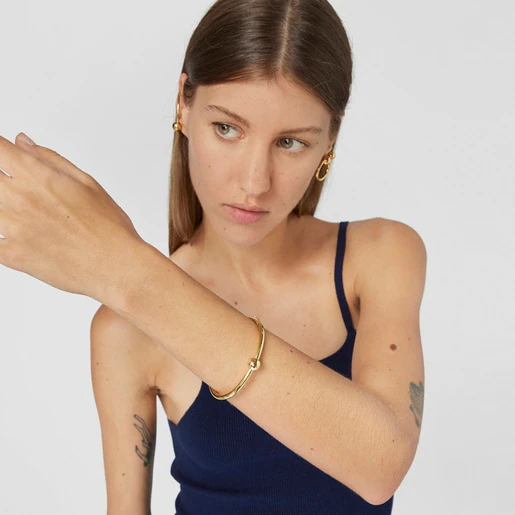 Sculptural silhouettes with pure, clean lines are the design’s main attraction in this silver vermeil bracelet from the Plump collection that recreates everyday motifs of nature and fishing, turning them into contemporary, chunky jewelry.