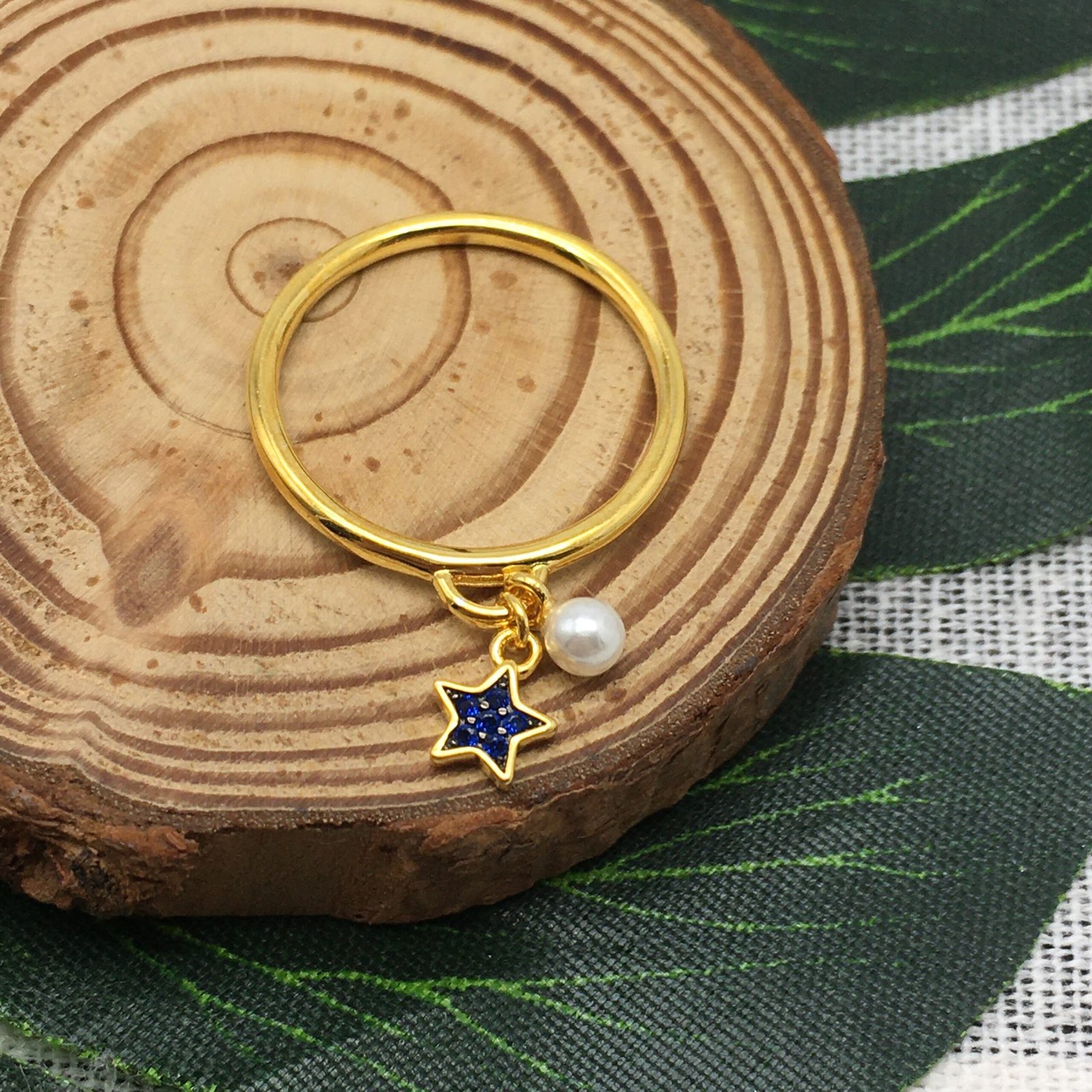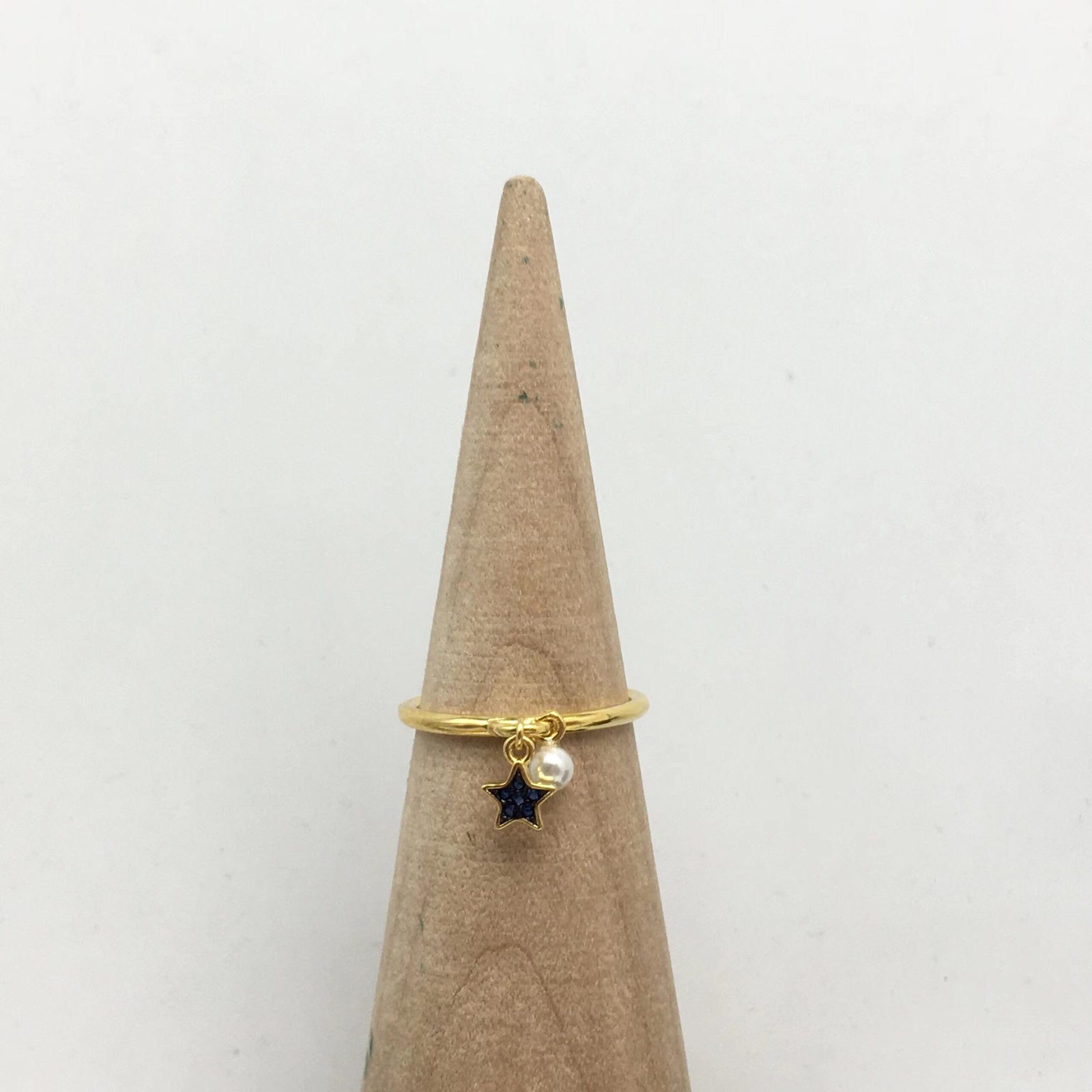 TOUS New Motif ring in silver vermeil with a 5.1 mm x 5.32 mm blue sapphire star and a pearl measuring Ø3 mm. Ring thickness: 1.5 mm.