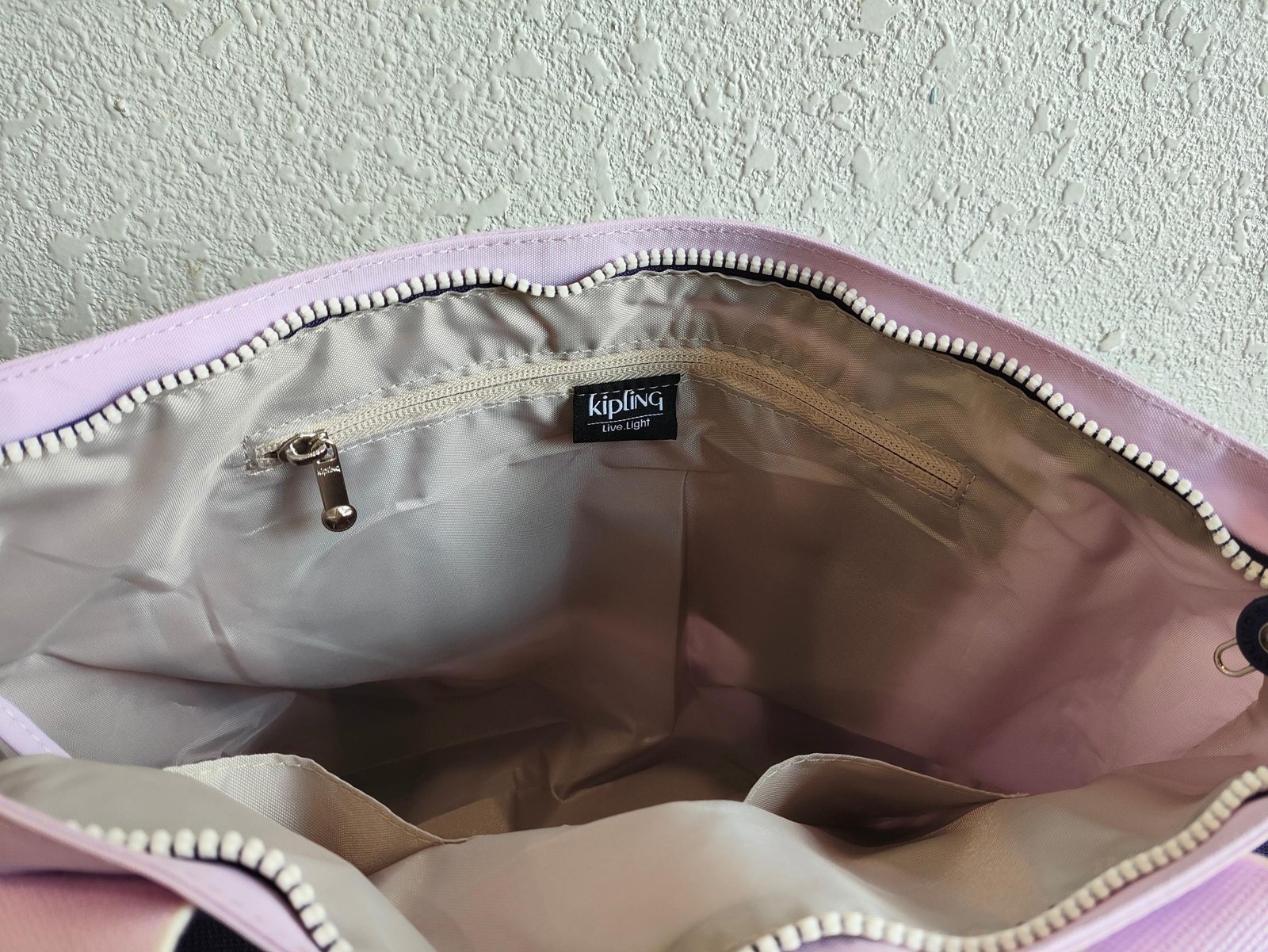 Soft purple splicing kiplinq women’s lightweight canvas 2024 new fashion trend casual shoulder bag tote bag