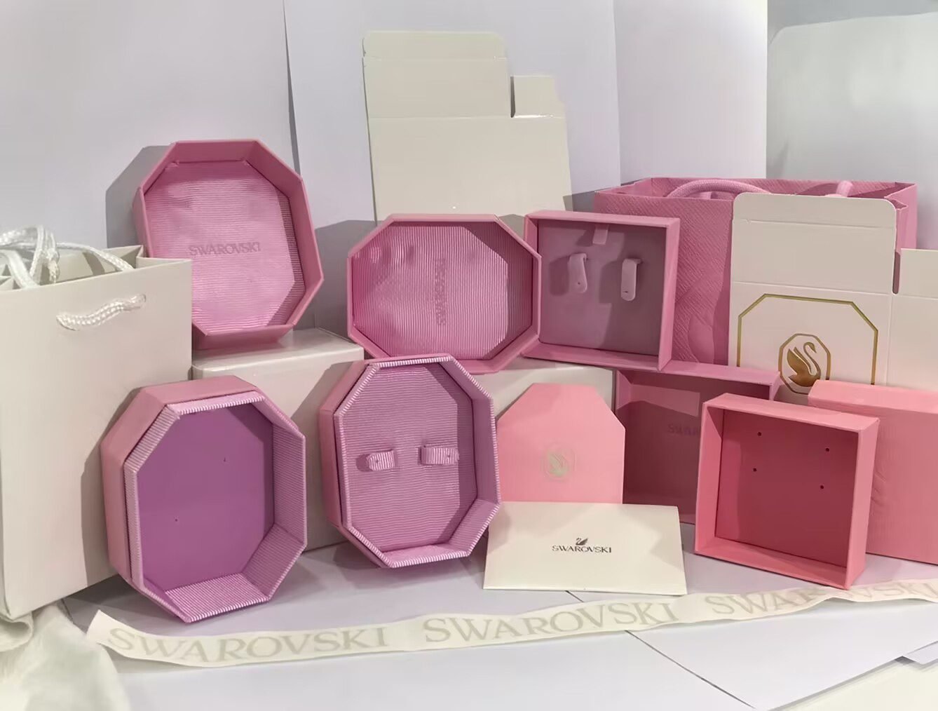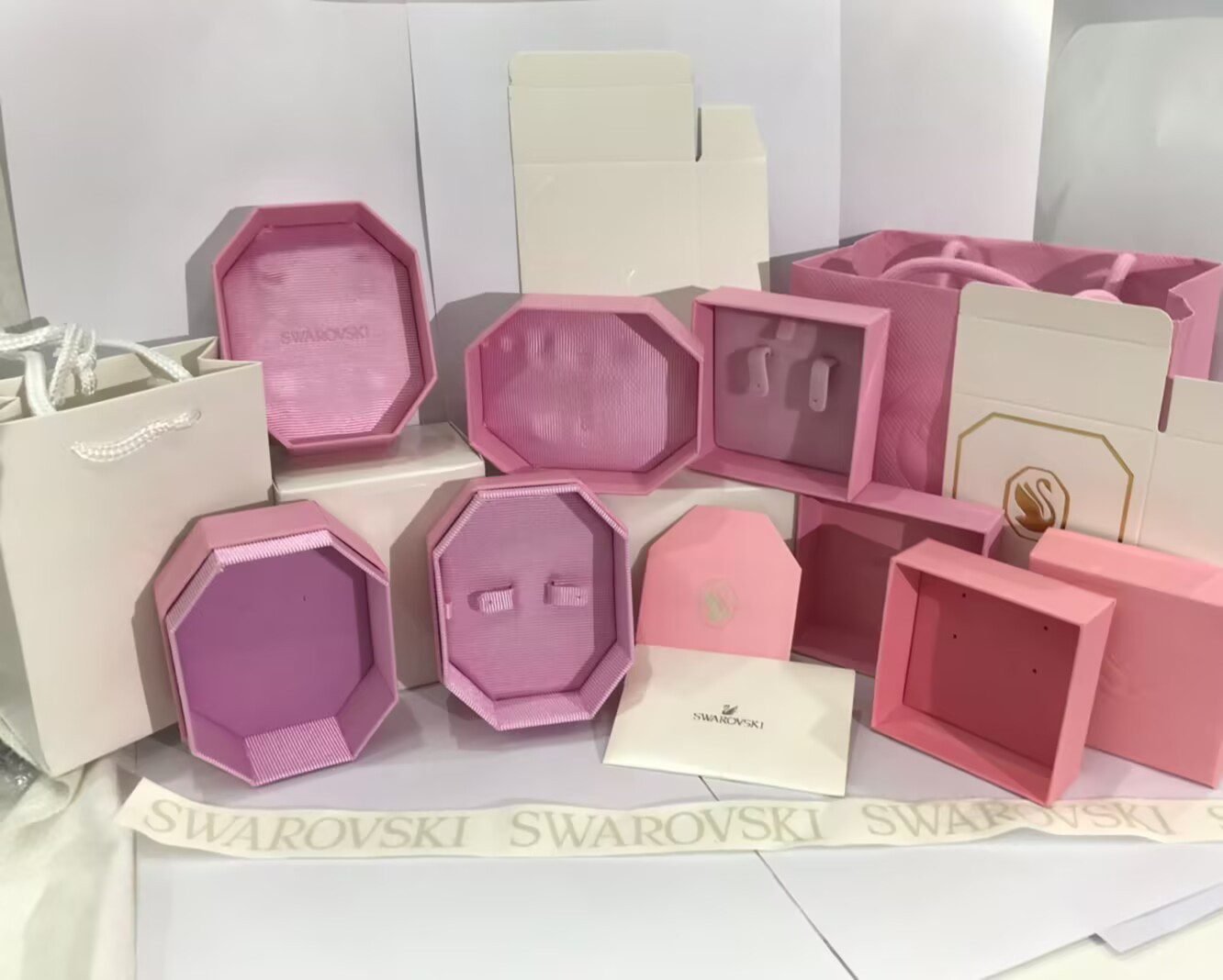 Pendientes: caja cuadrada para collar/caja octogonal con diamantes.