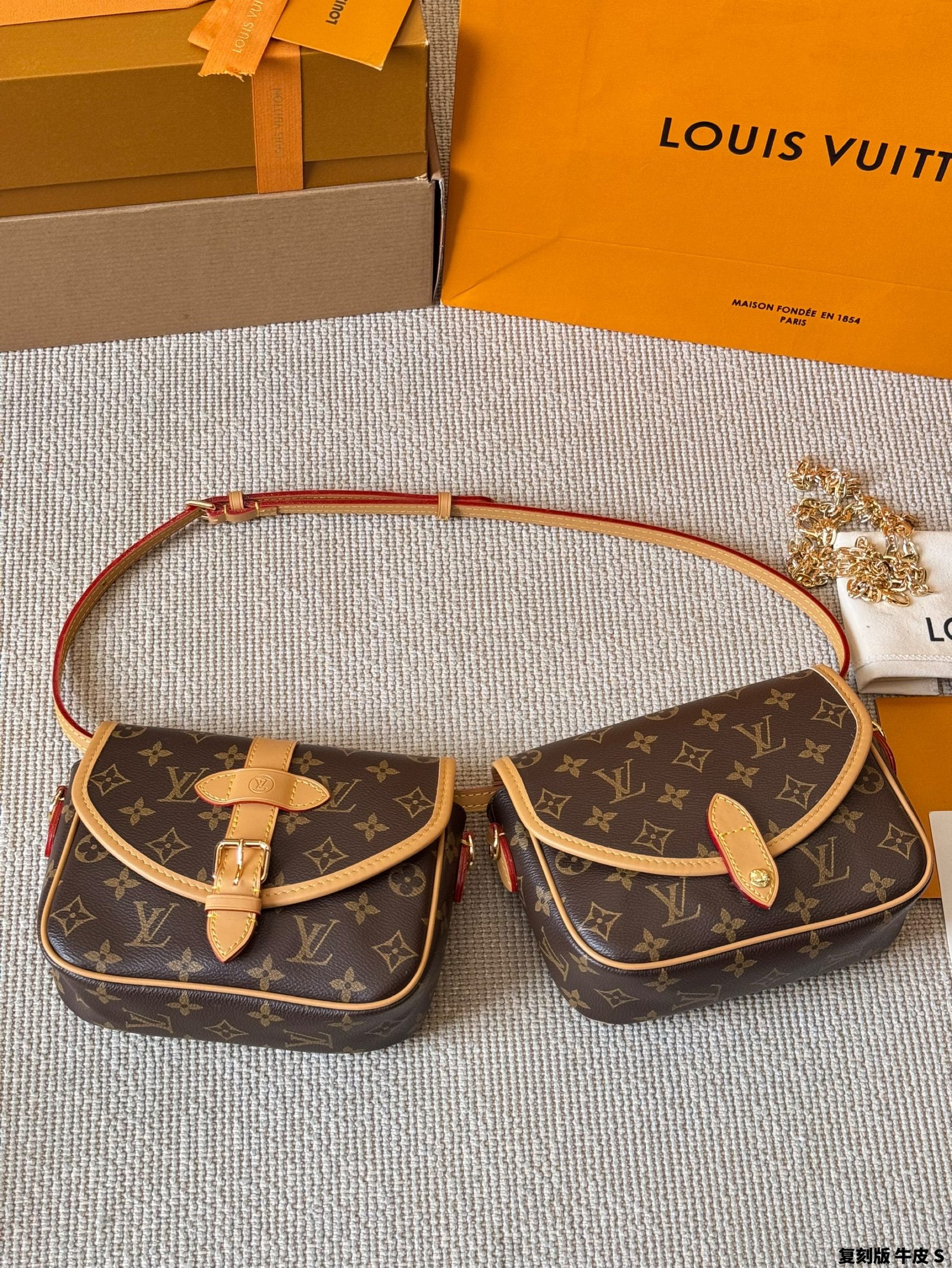 Be the first to review “The LV showcase features a dual-purpose bag, offering three functions in one. It can be worn as a waist bag and can be detached into two separate bags, one with a chain strap and the other with a shoulder strap” Cancel reply