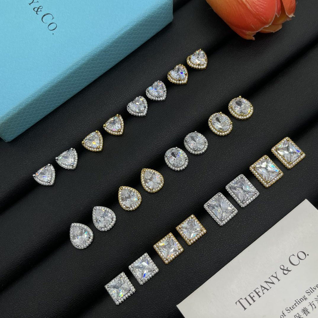 Tiffany Multi-Shaped Diamond Earring Set – 18K Gold Diamond-Embedded Heart/Drop/Square Single Earrings, Tiffany Daily Versatile Accessories