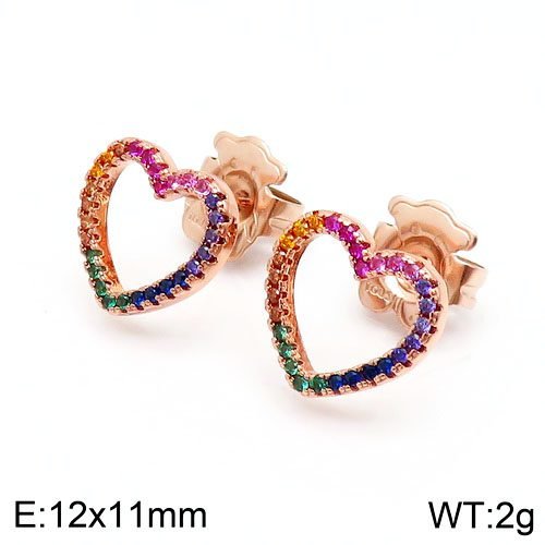 Colorful zircon, dazzling: Within the heart frame, multiple colorful zircons are embedded. These zircons have been carefully selected and cut, presenting a variety of bright colors such as red, yellow, blue, etc., like a rainbow. They complement the silver heart-shaped frame, adding a sense of fashion and vitality to the earrings, while also making the overall design more colorful and unforgettable.